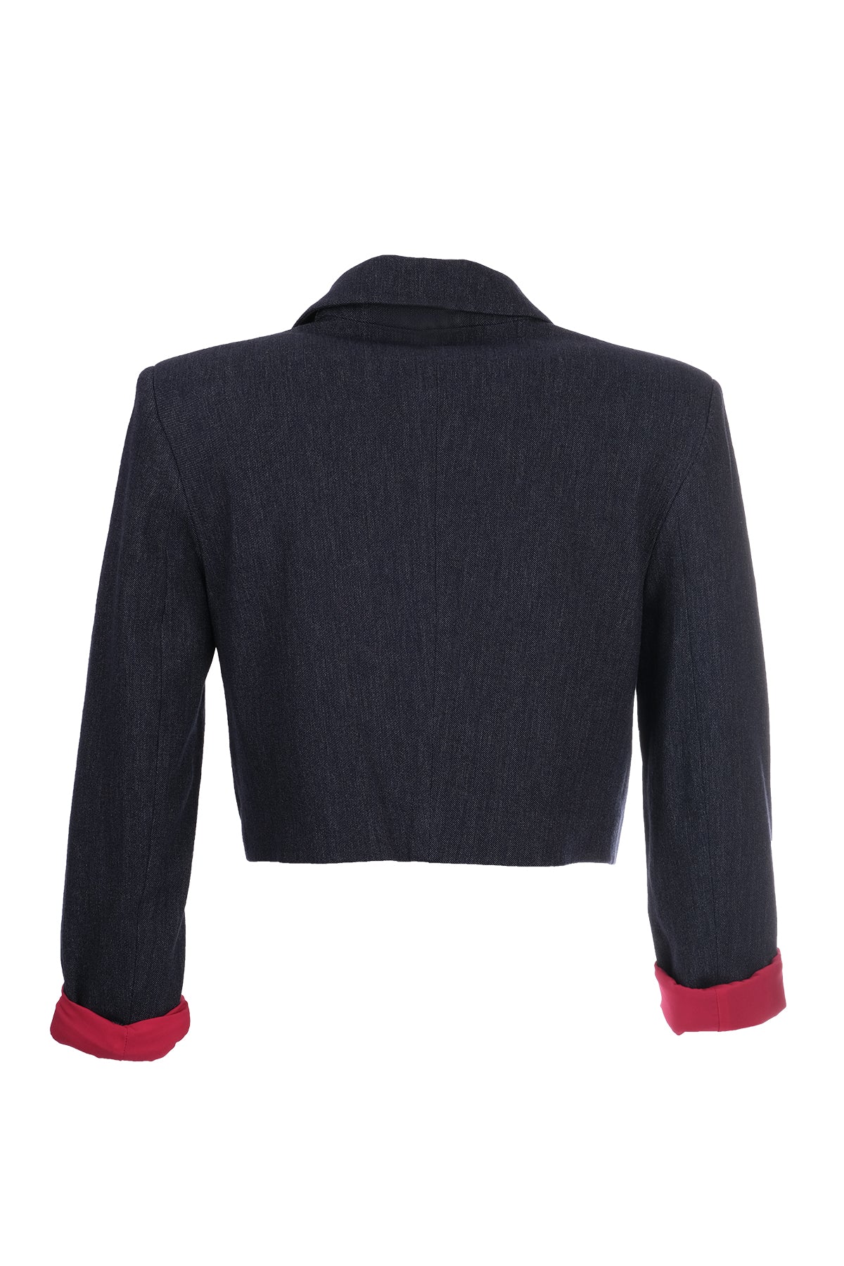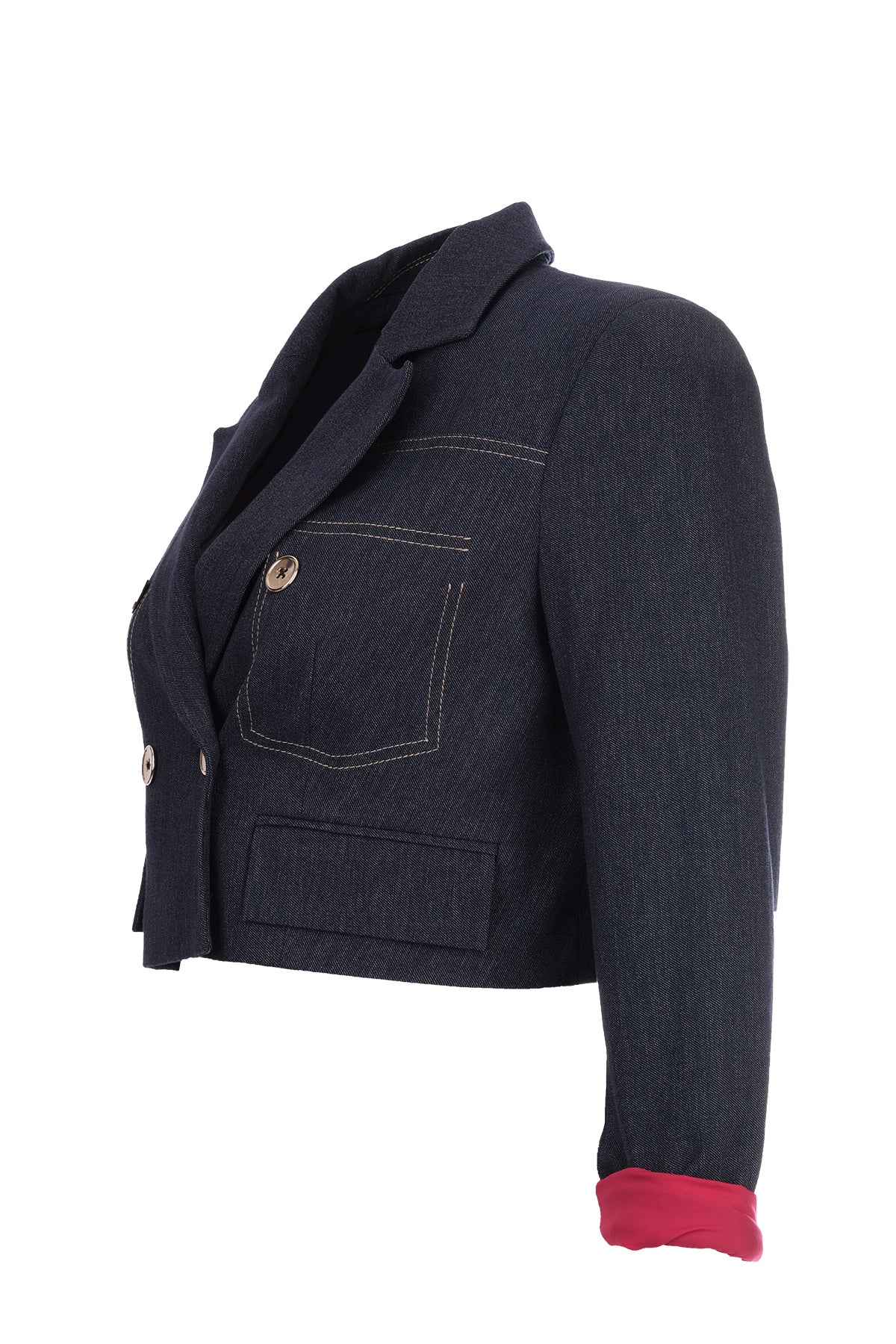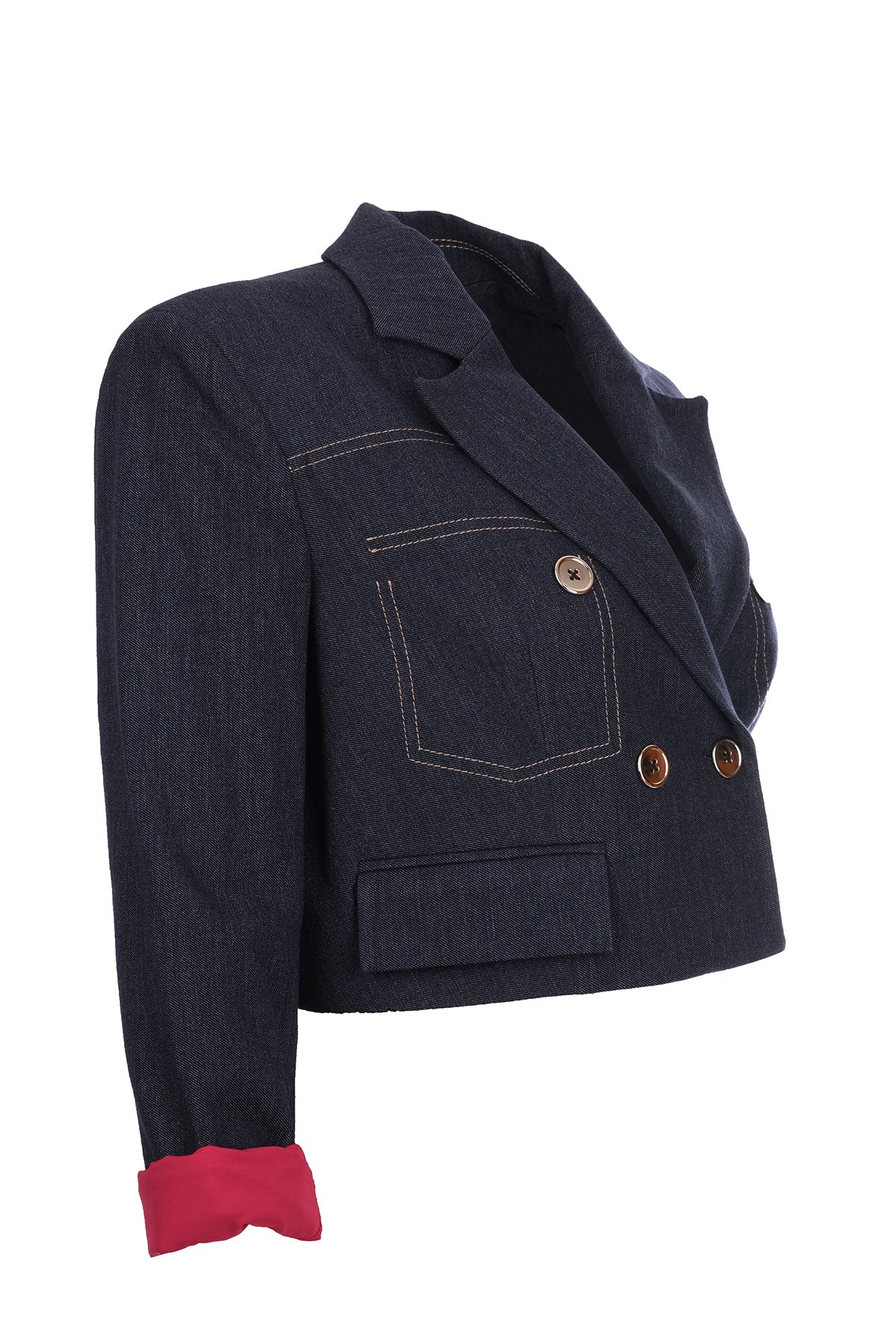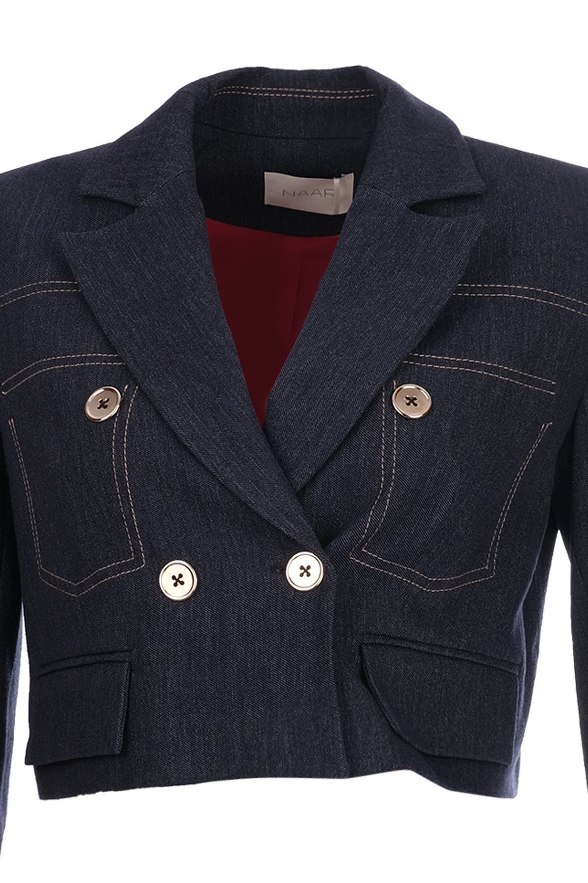 جاكيت جينز قصير بتصميم بسيط من نار - أكمام ثلاثة أرباع، زر مزدوج - أناقة يومية