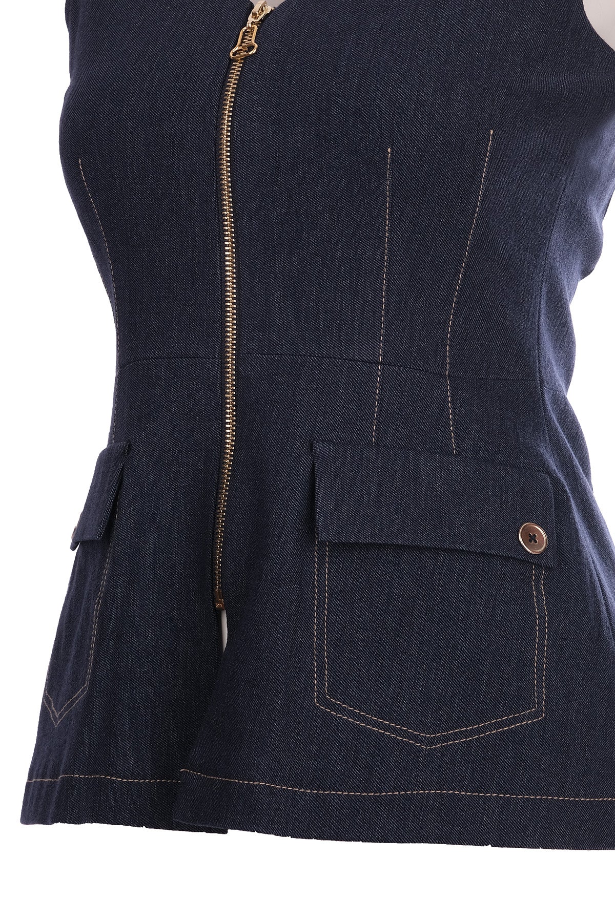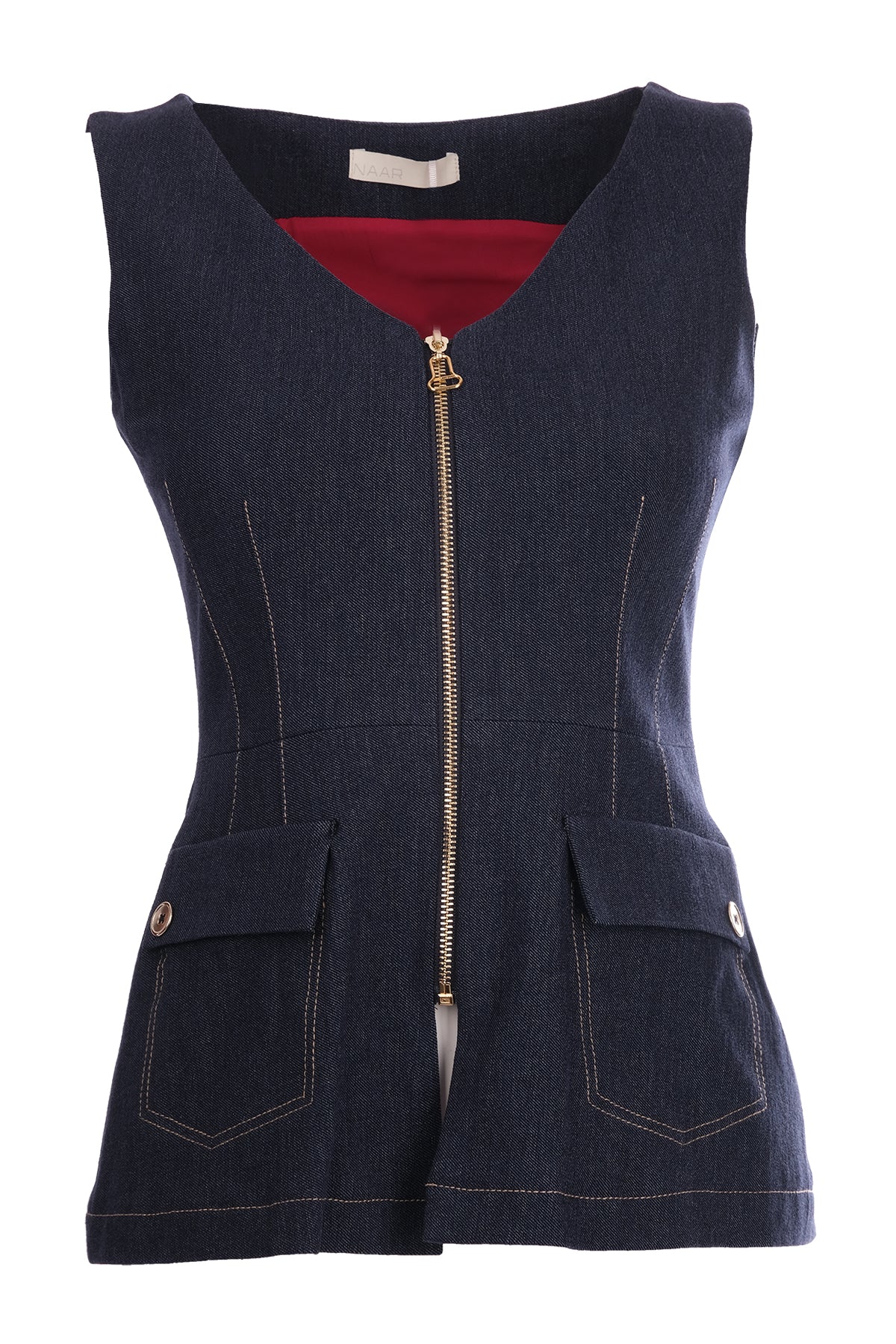 صدرية نار البسيطة بدون أكمام بسحاب وتفاصيل جيوب - أناقة يومية