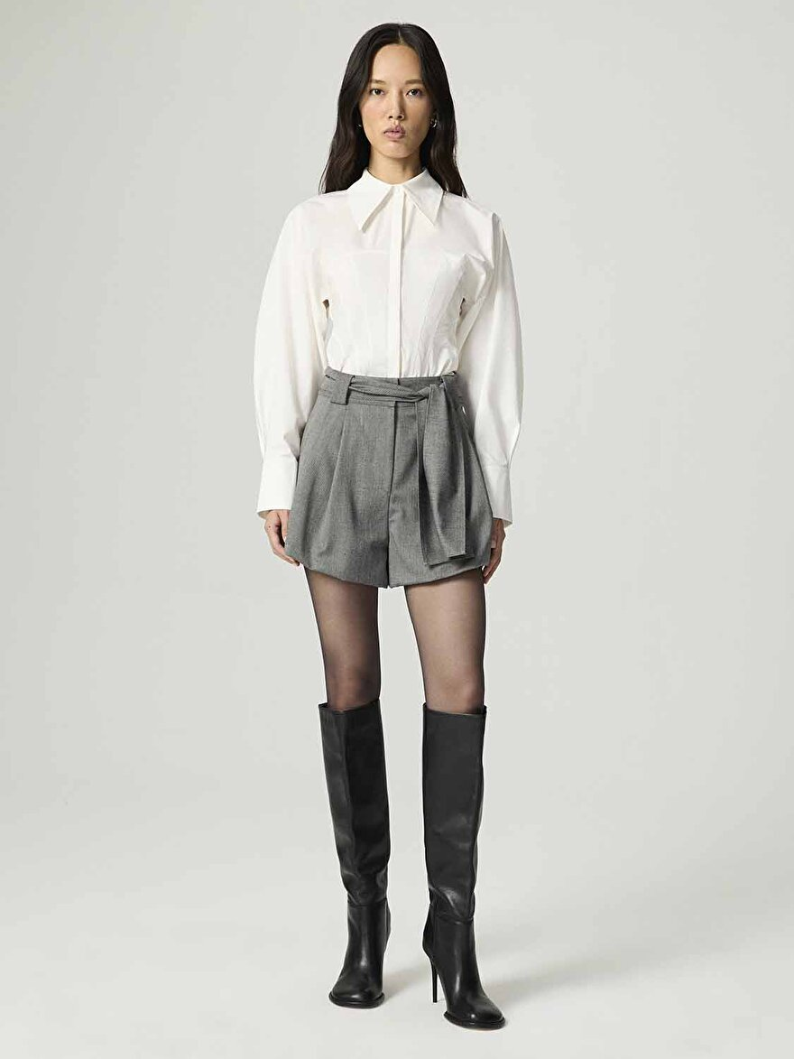 صُممت هذه الشورتات القصيرة عالية الخصر والمزودة بحزام لإبراز الخصر وإطالة الساقين، وهي قطعة أساسية في خزانة ملابسك الصيفية، تضفي لمسة مميزة على إطلالتك. مصنوعة من قماش منسوج بألوان زاهية لإطلالة أنيقة، وتتميز بحزام خصر متين قابل للإزالة، وجيوب جانبية عملية، وسحاب مخفي. سواءً ارتديتها مع بلوزة مدسوسة أو سترة فضفاضة، ستضفي لمسة من الأناقة العفوية على إطلالتك الصيفية.