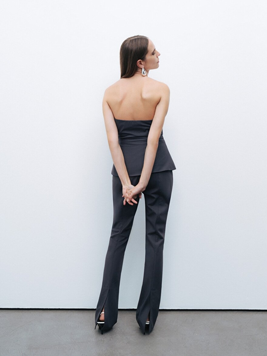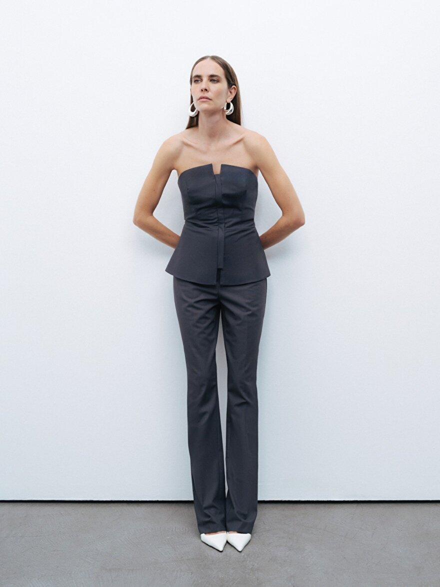 وصف المنتج: بلوزة ضيقة، مبطنة، منسوجة، بدون أكمام، مع سحاب أمامي مخفي ومظهر يشبه الكورسيه.