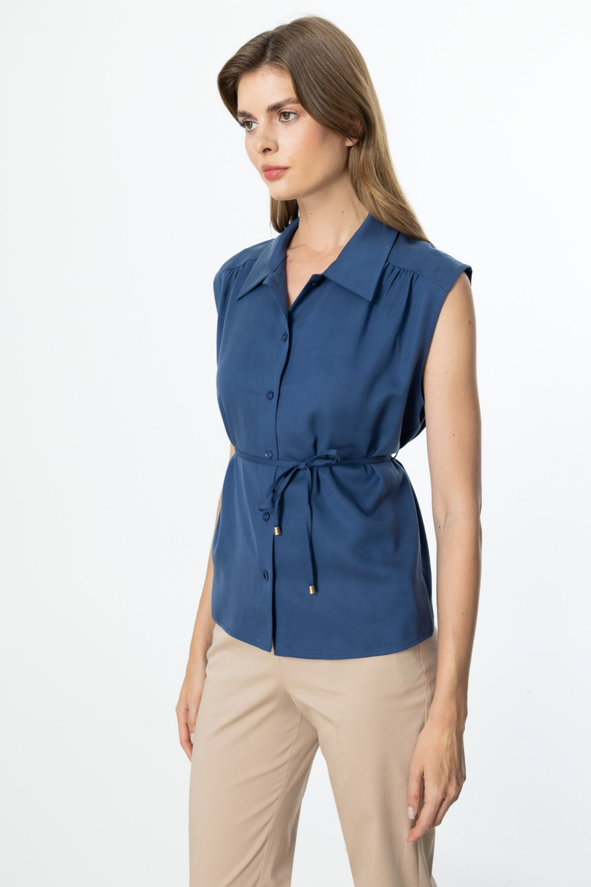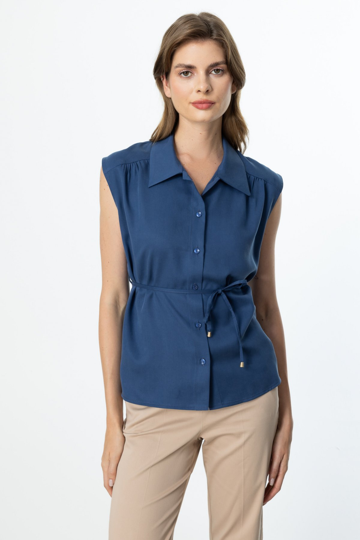 قميص بدون أكمام برباط عند الخصر