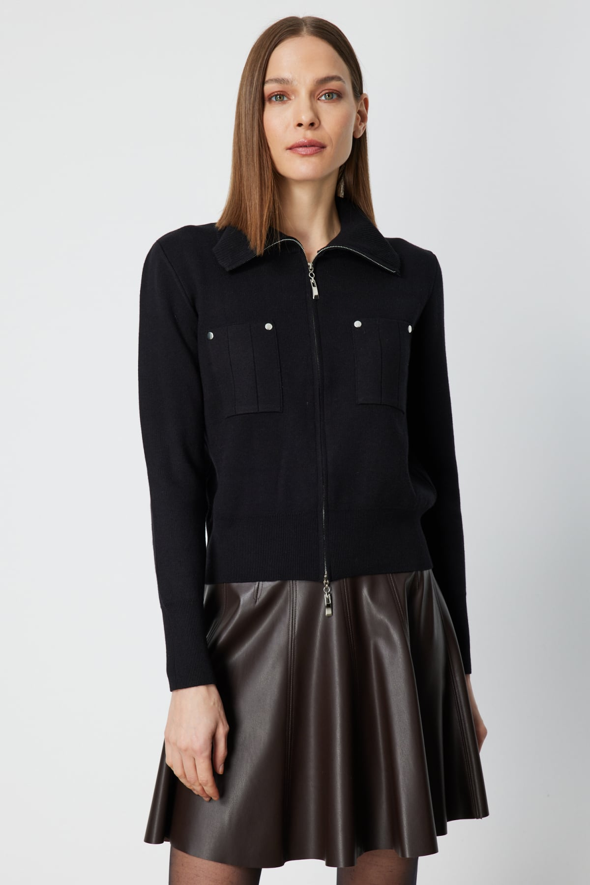 كنزة محبوكة بتفاصيل جيب وسحاب