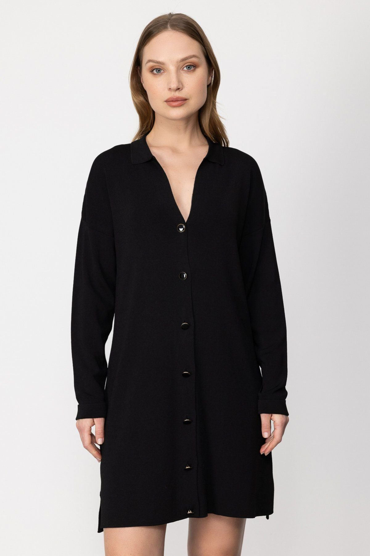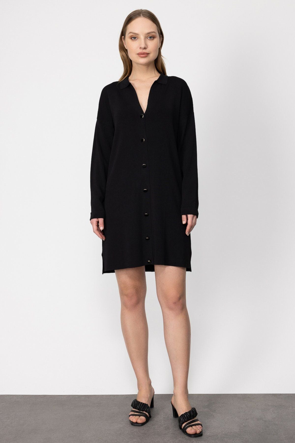 ميزات المنتج: إغلاق بأزرار أمامية؛ قماش محبوك؛ بدون سطور؛ أكمام طويلة؛ قميص بولو؛ مقاس المنتج: مطابق للمقاسات المعتادة؛ سُمك المنتج: متوسط؛ طول المنتج: 84 سم؛ تركيبة النسيج: 65% فيسكوز 35% نايلون؛ موسم المنتج: الربيع/الصيف؛ قياسات النموذج: مقاس العينة: على الموضة: صغير؛ طول العارضة: 176 سم؛ قياسات النموذج: 84/61/89؛