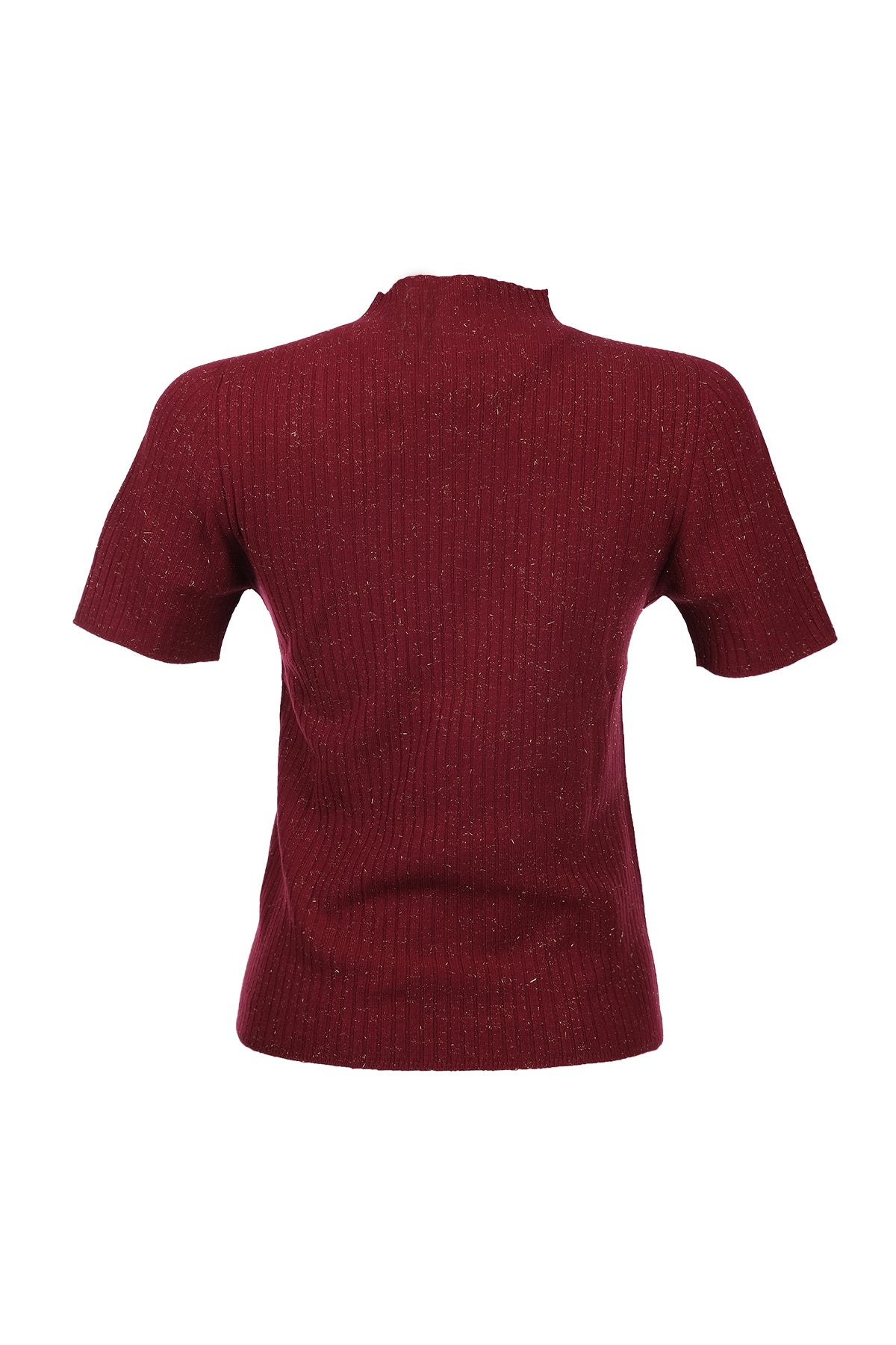 عشرة كنزات نسائية قصيرة الأكمام بياقة عالية بتصميم بسيط - أنيقة للاستخدام اليومي