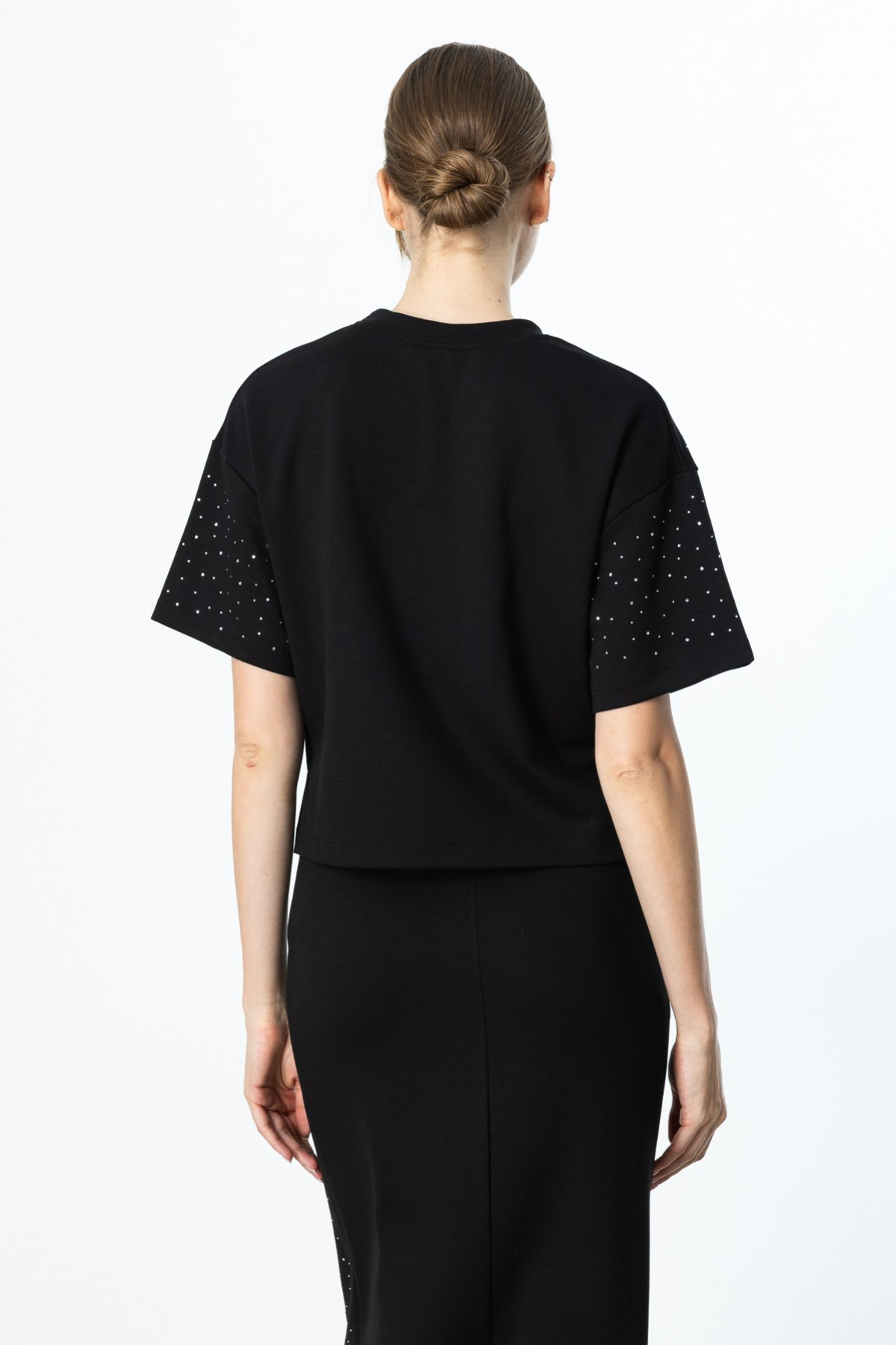 بلوزة قصيرة الأكمام مطبوعة بعشرة أحجار