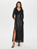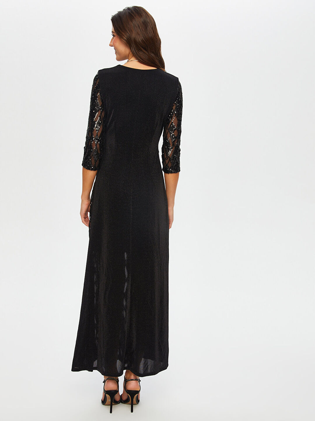 اسم المنتج: فستان سهرة طويل مزين بالترتر، بأكمام ثلاثة أرباع وفتحة رقبة على شكل حرف V، مصنوع من قماش محبوك، موديل S25ABY005