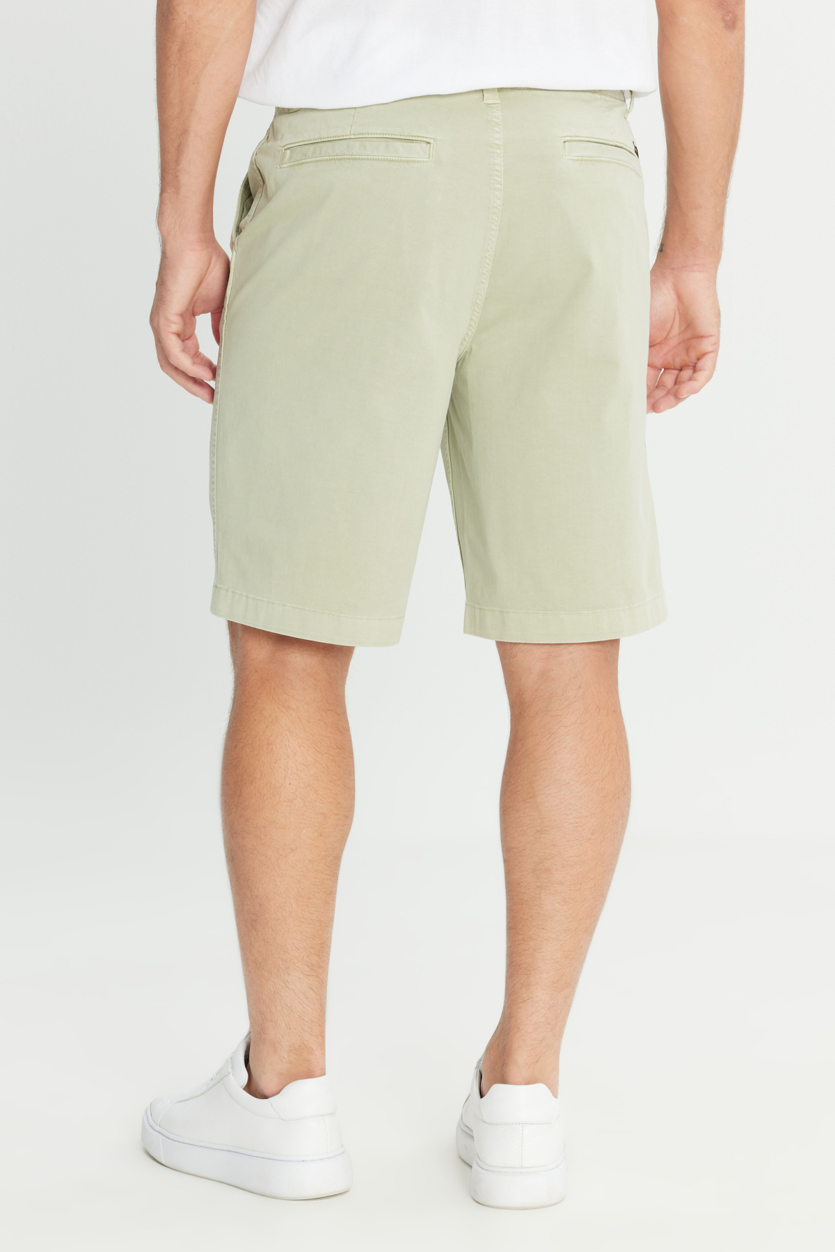 شورت تشينو قطني مطاطي أخضر فاتح، بقصة عادية، وخصر مطاطي.