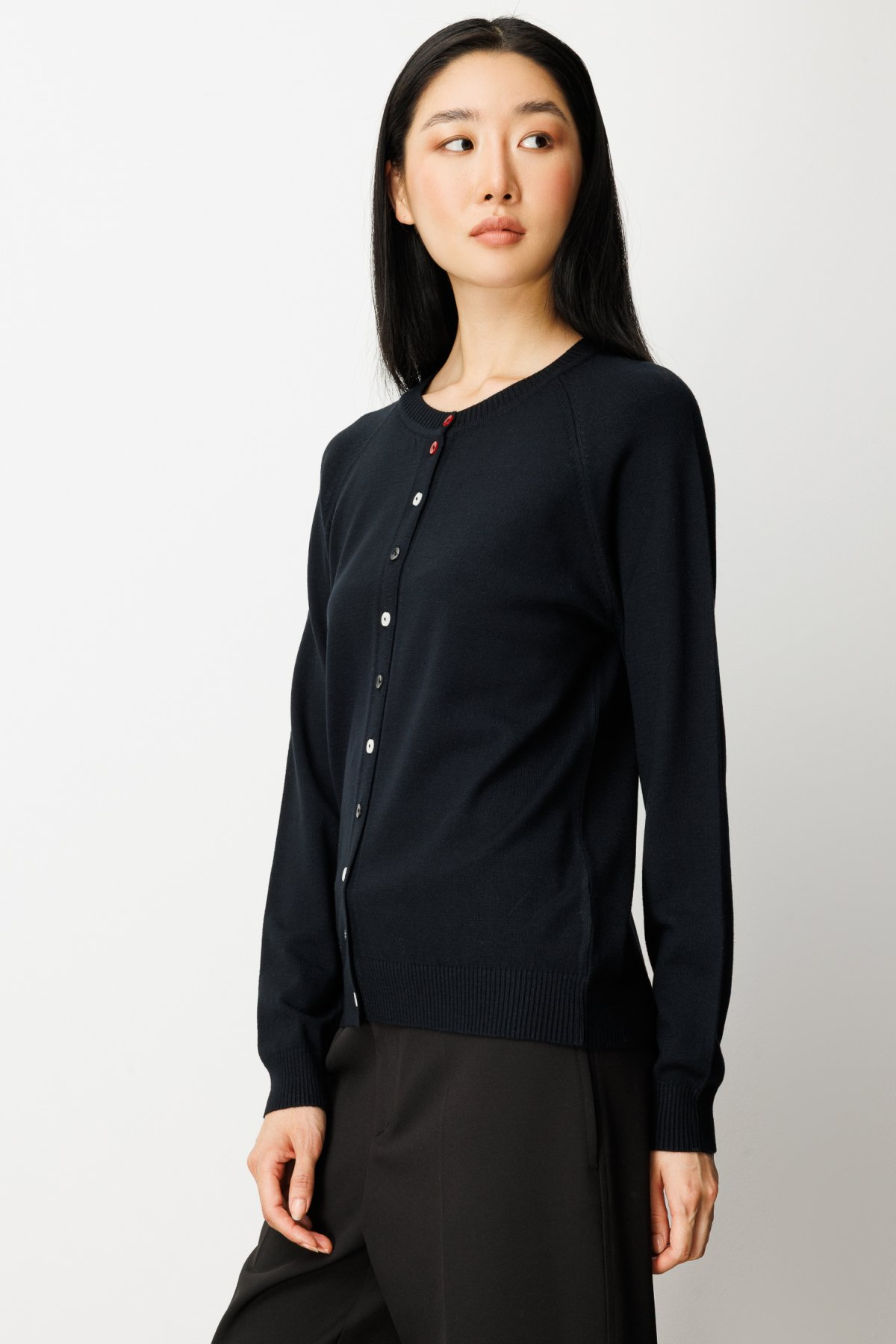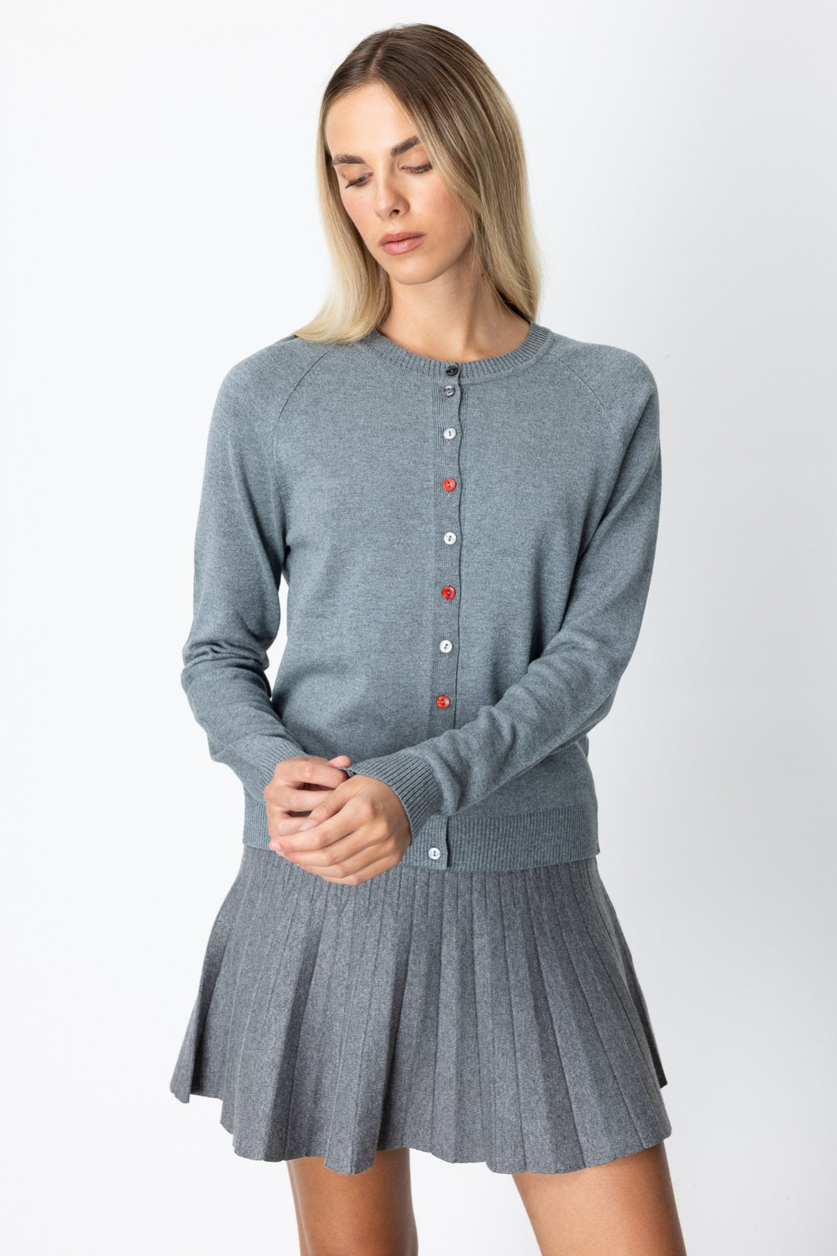 كارديجان محبوك ملون بأزرار وياقة دائرية