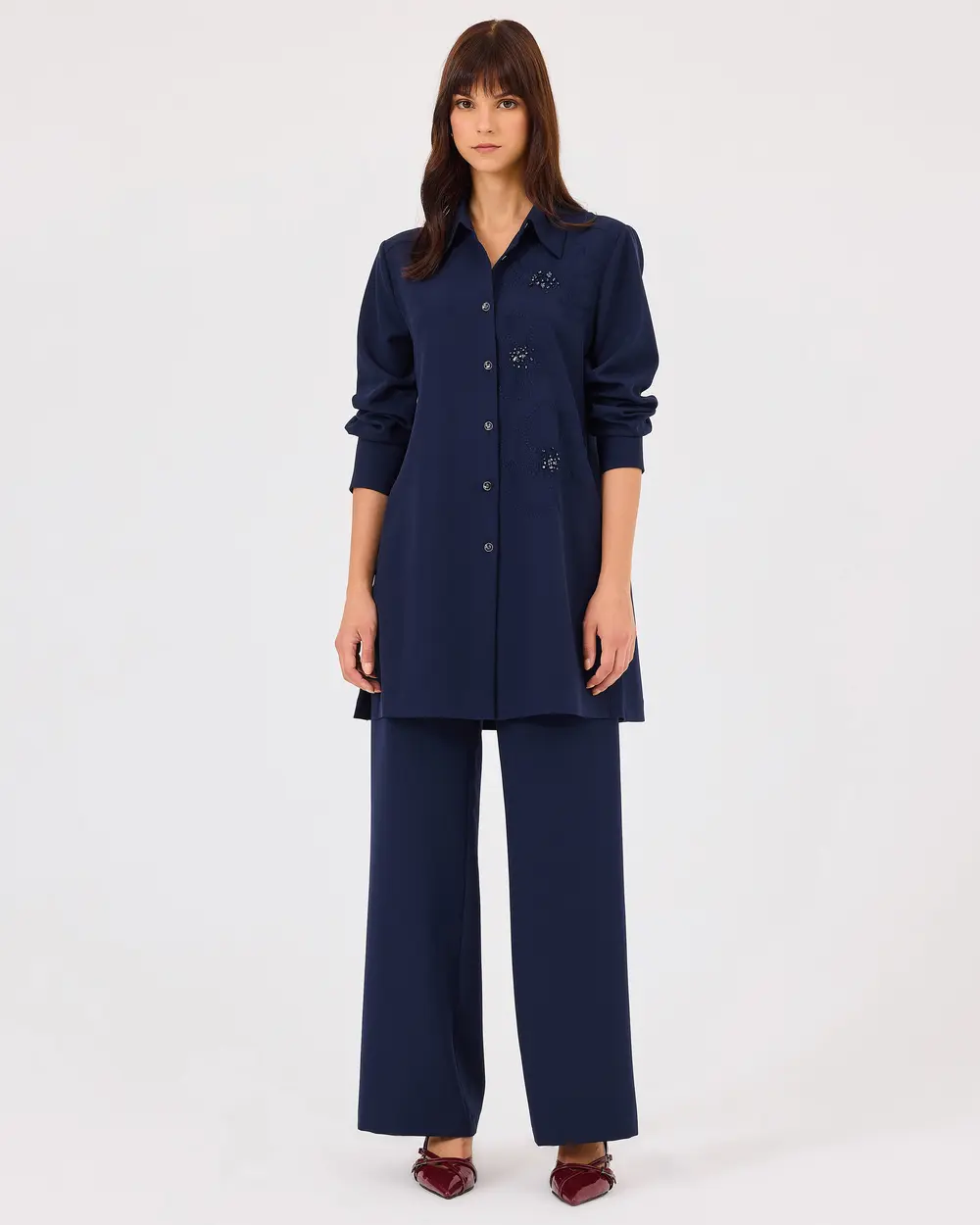 توفر السراويل ذات الجيوب الواسعة الأناقة والراحة للارتداء اليومي. تضيف الجيوب مزيداً من العملية، بينما يوفر التصميم البسيط والعصري حرية الحركة.