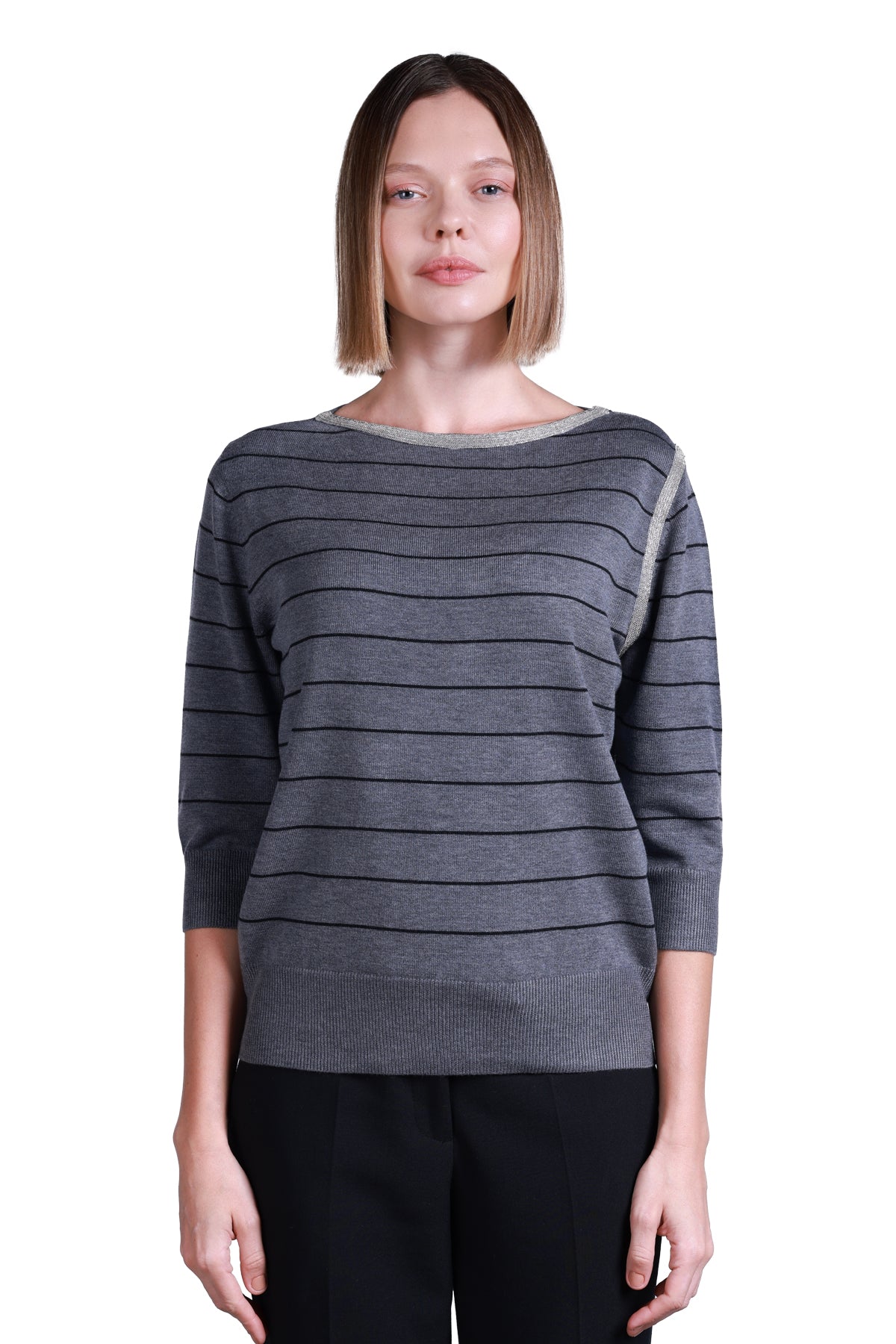 كنزة نسائية مخططة بأكمام ثلاثة أرباع من سيمبري - عصرية ومريحة