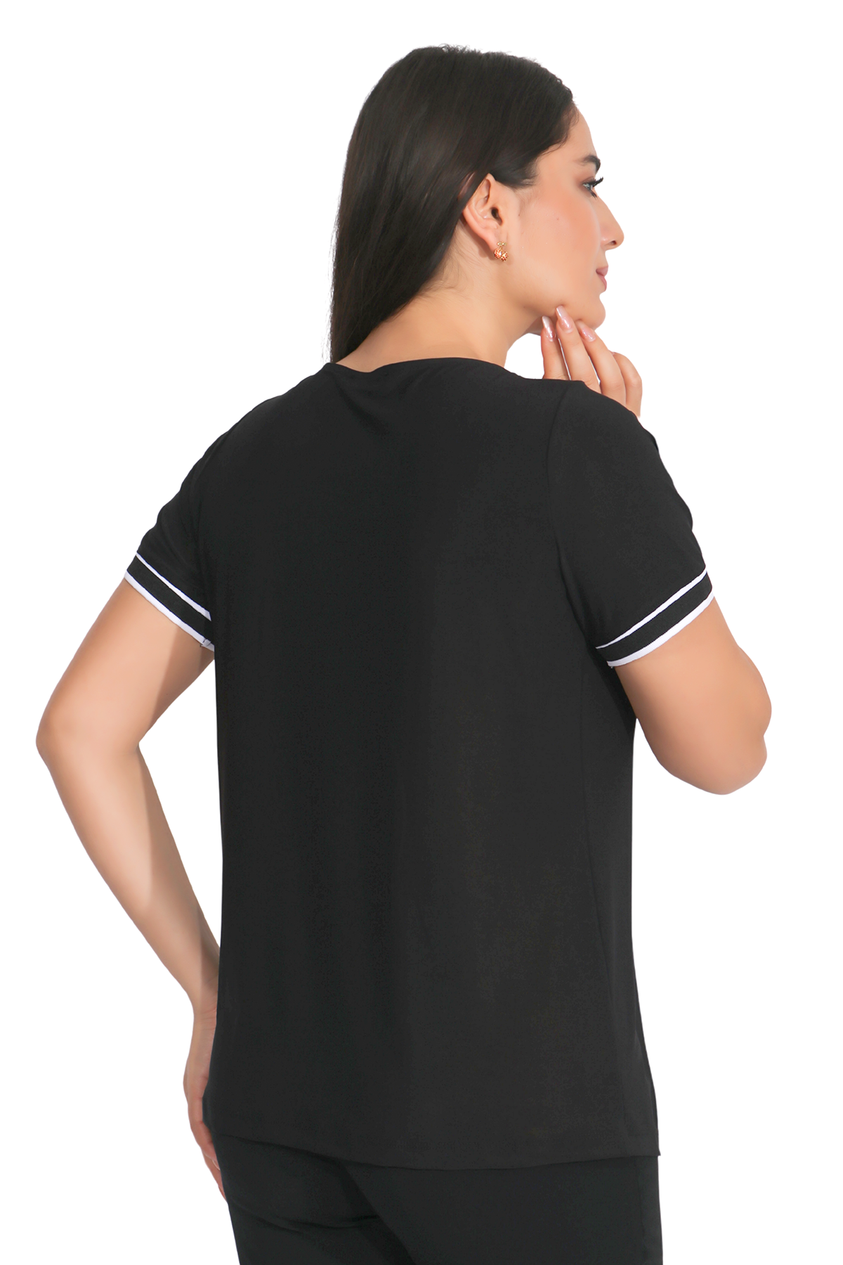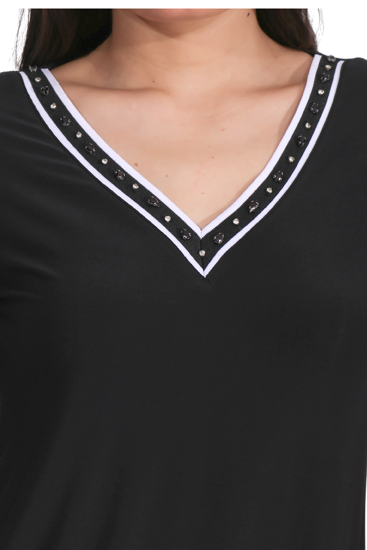 ياقة على شكل حرف V، وأكمام قصيرة