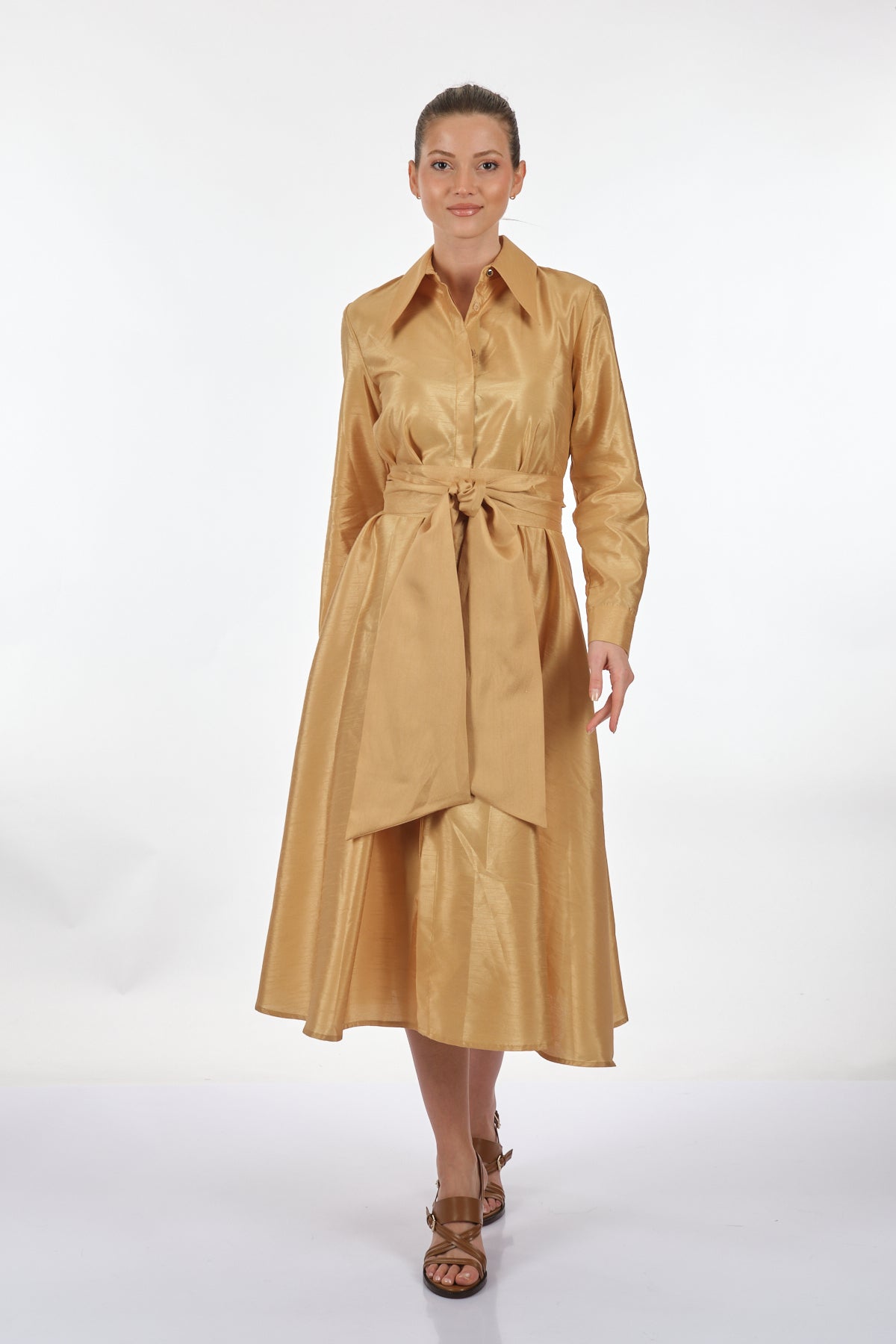 فستان شيفون متوسط الطول بأكمام طويلة بتصميم بسيط من SLeeN - أنيق وعصري (شحن مجاني)
