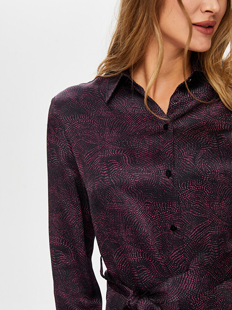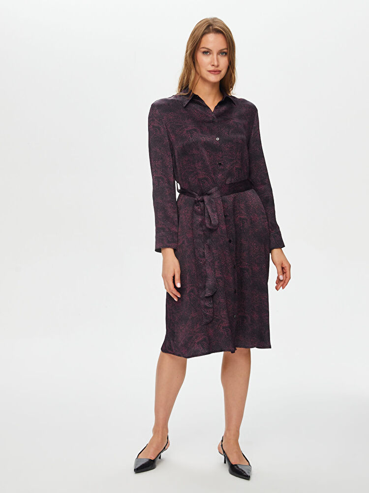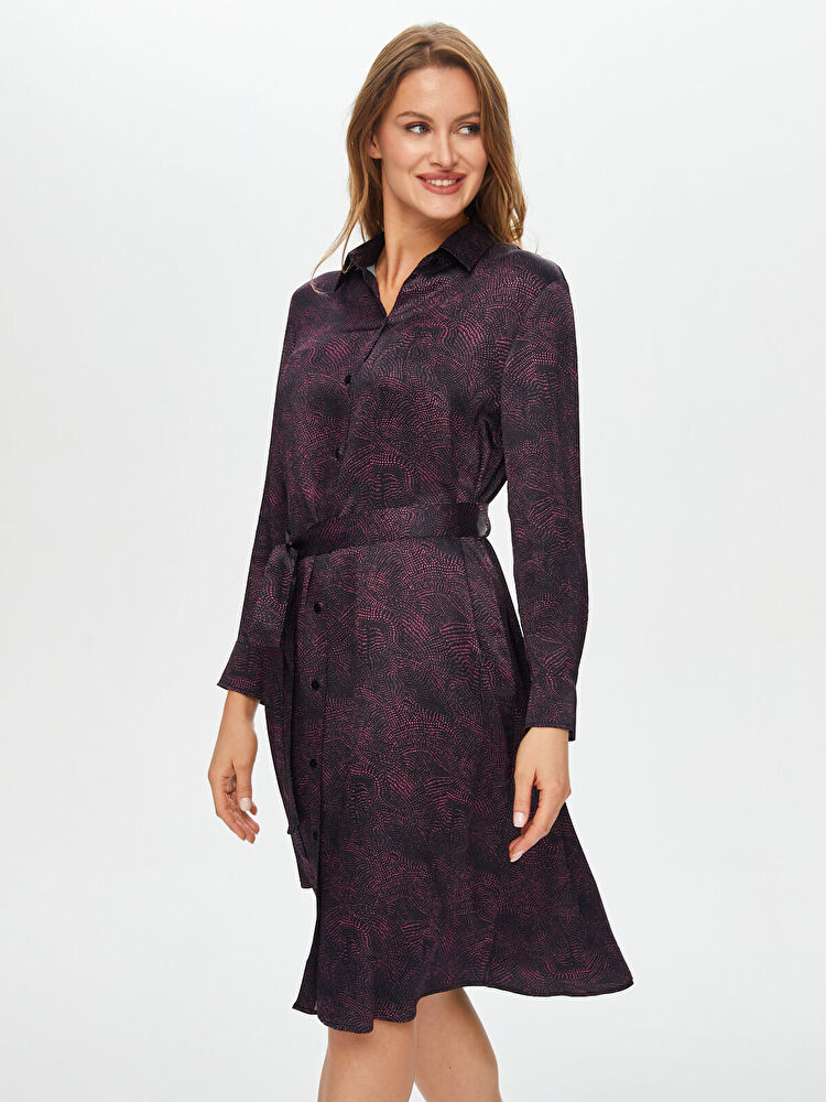 فستان قميص بأكمام طويلة بنقشة تجريدية من تصميم فائق سونميز