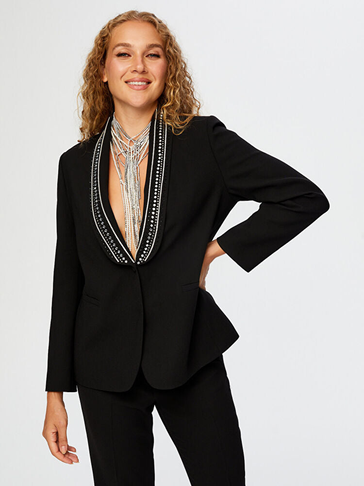 جاكيت سهرة مزين بتفاصيل حجرية من تصميم فائق سونميز