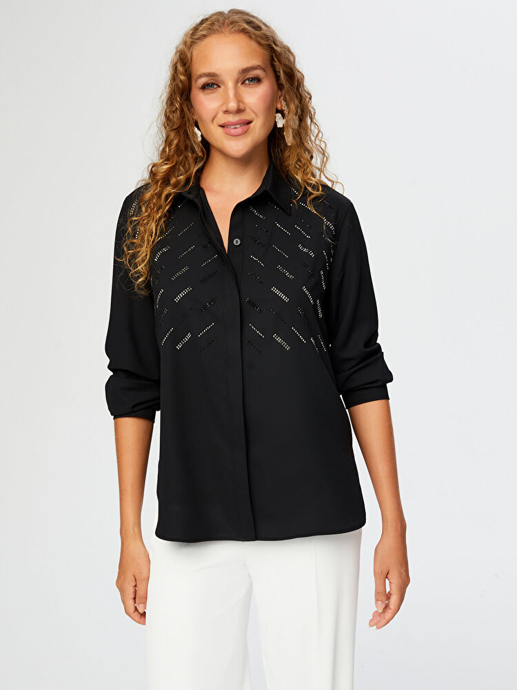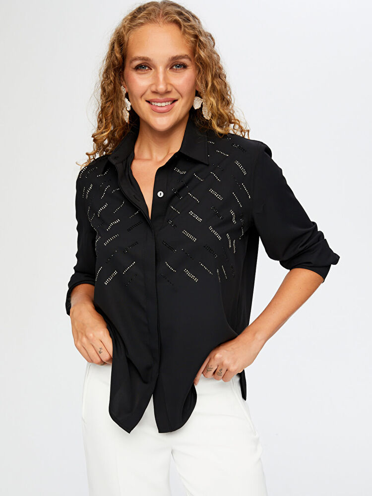 قميص أنيق بأكمام طويلة مزين بتفاصيل حجرية من تصميم فائق سونميز