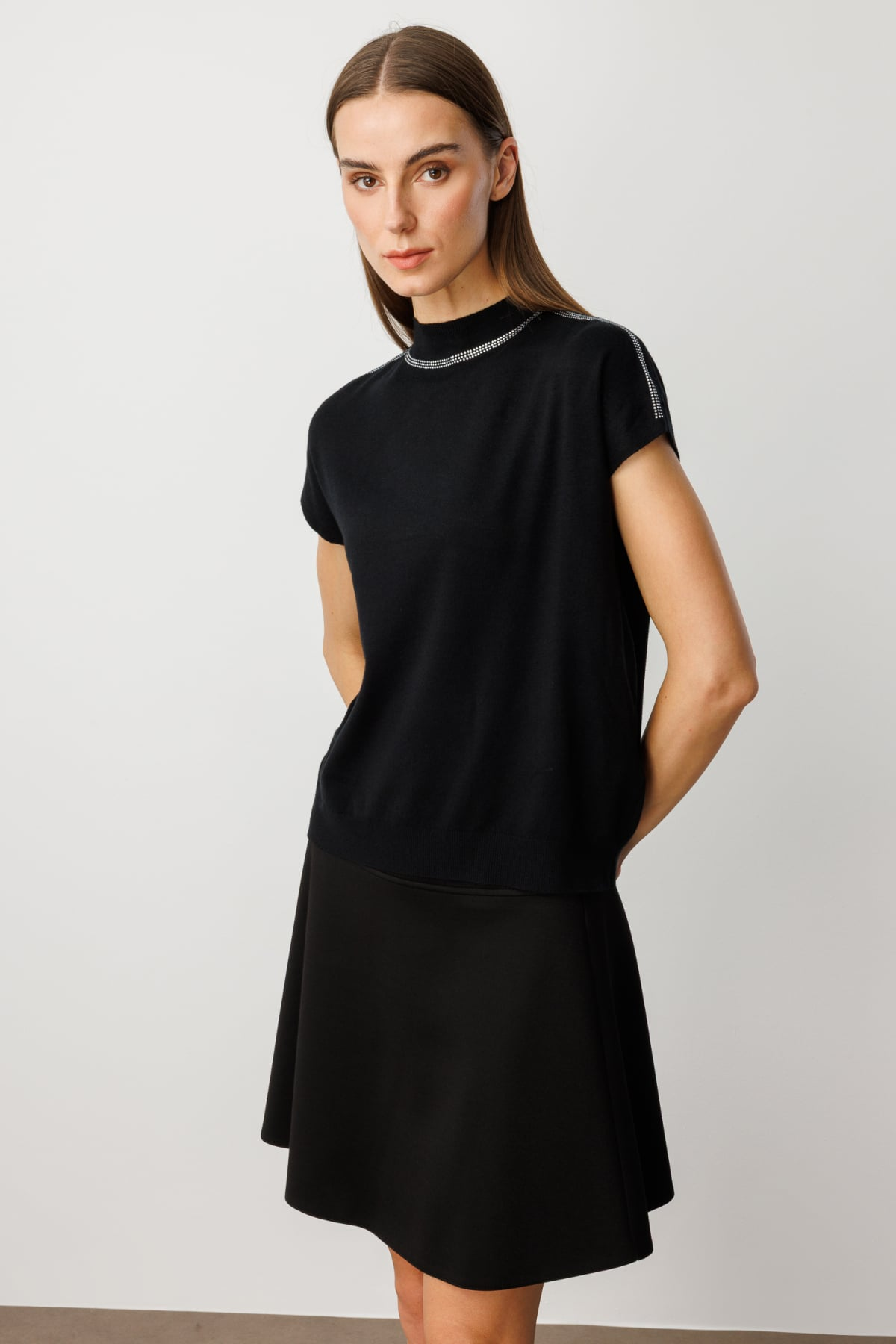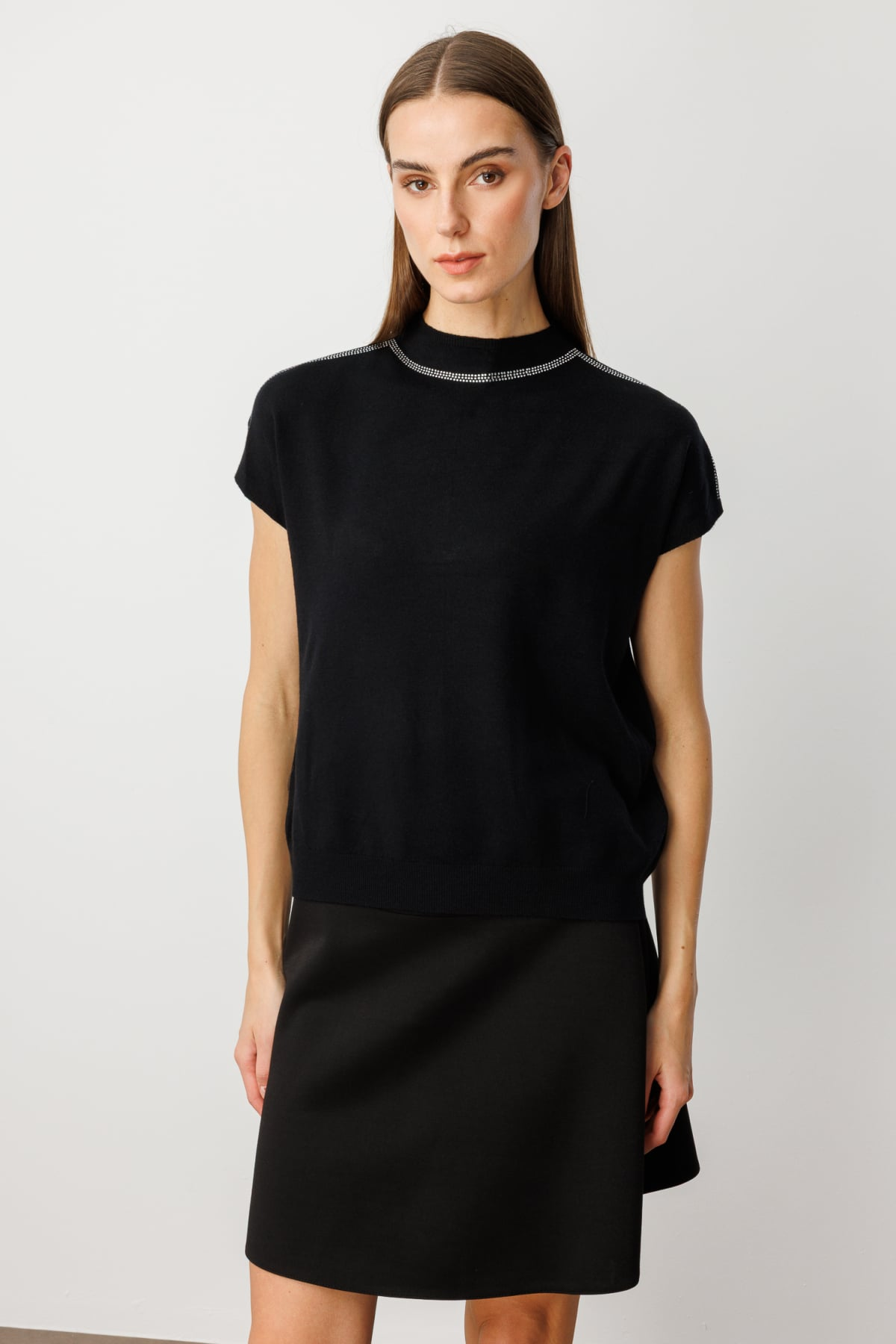 بلوزة محبوكة قصيرة الأكمام مزينة بالأحجار