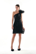 فستان سهرة قصير من قماش شبكي مزين بالترتر بكتف واحد وتفاصيل مكشكشة