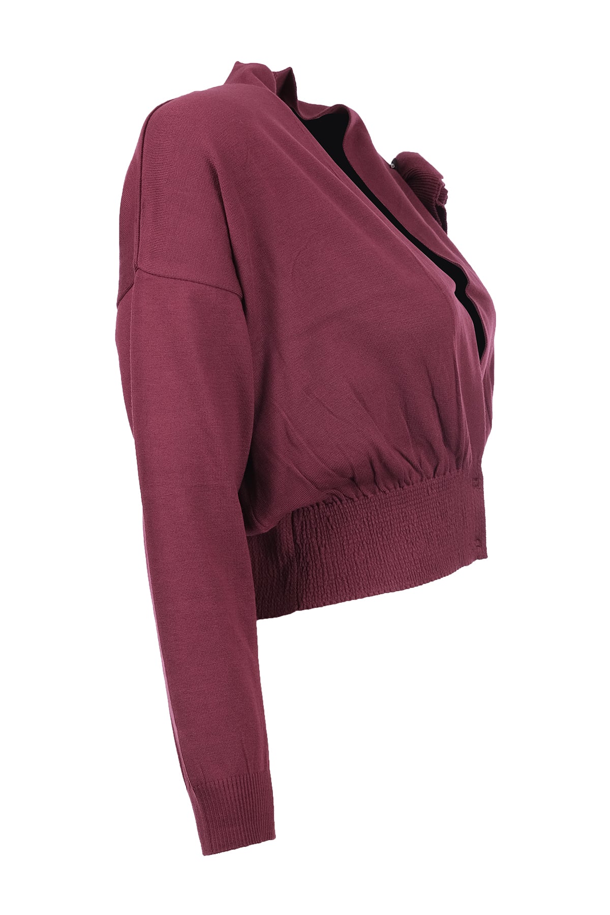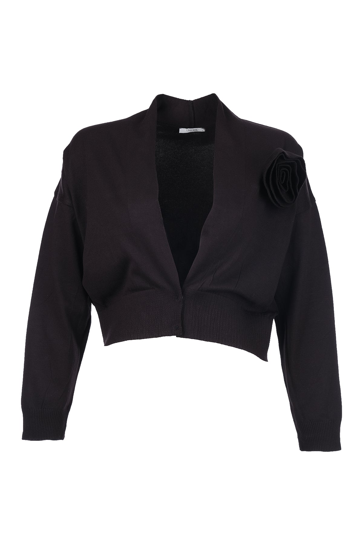 كارديجان قصير نسائي بتصميم بسيط من يونيك مود، بياقة على شكل حرف V وأكمام طويلة