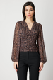 بلوزة شيفون منقوشة بياقة على شكل حرف V