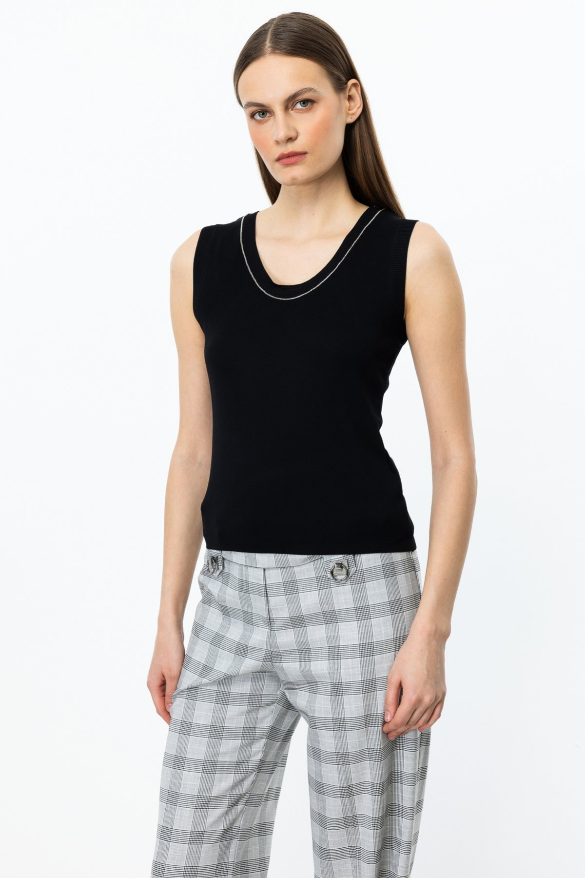 بلوزة بدون أكمام بياقة مزينة