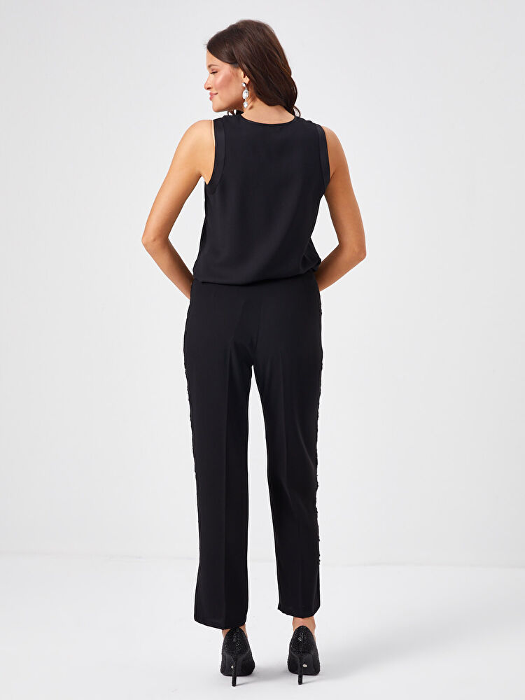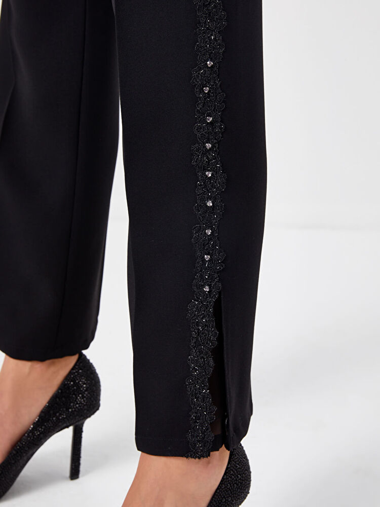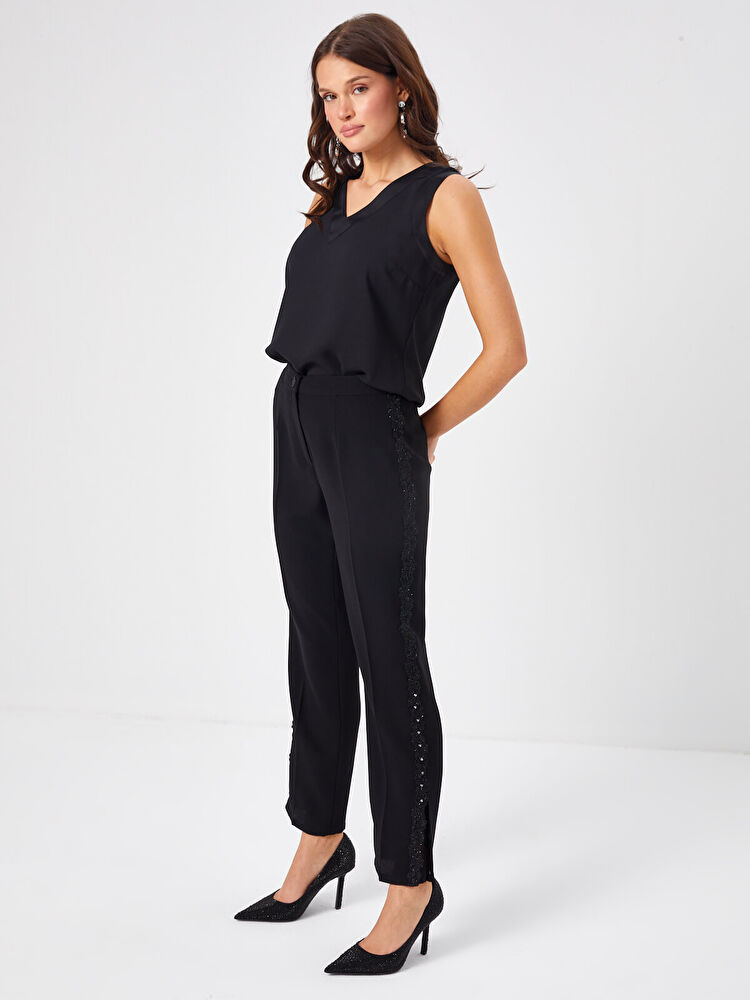 بنطلون ضيق بقصة مستقيمة مزين برباط جانبي وأحجار من تصميم فائق سونميز