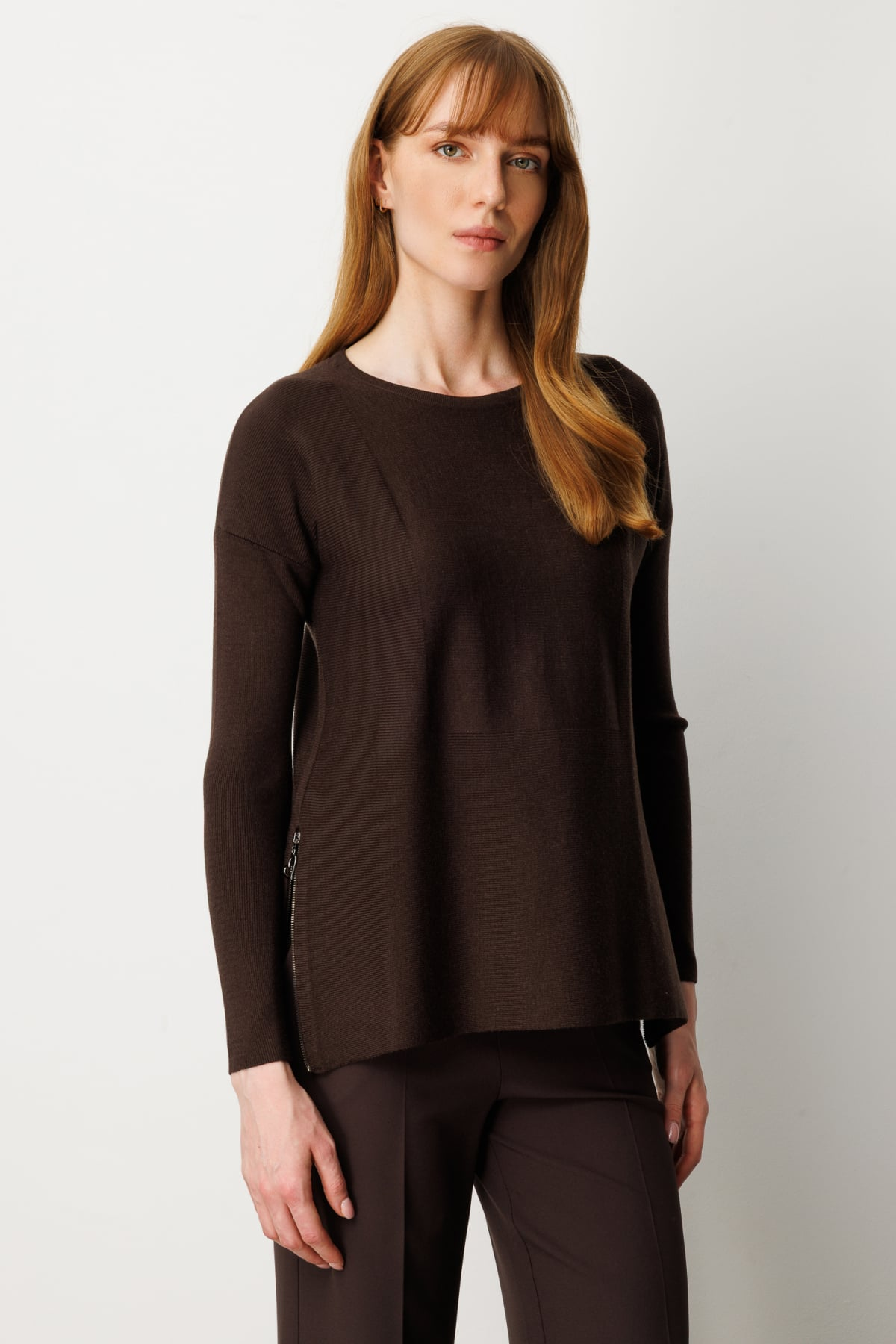 كنزة صوفية محبوكة برقبة دائرية وسحاب جانبي، مقاس عشرة