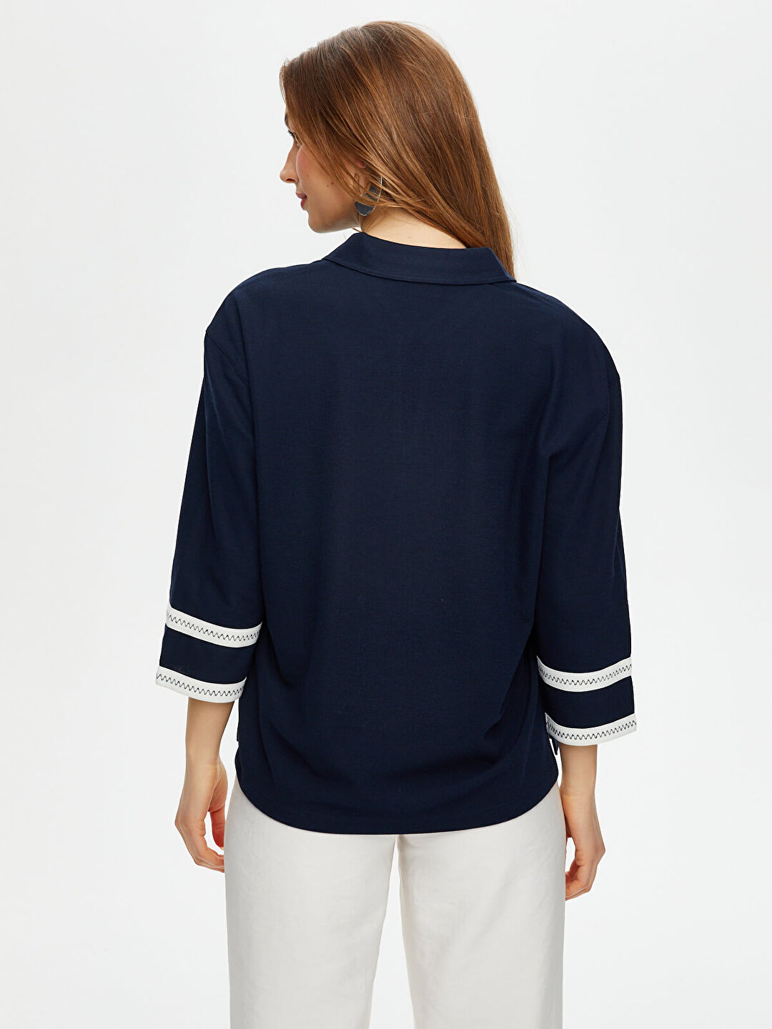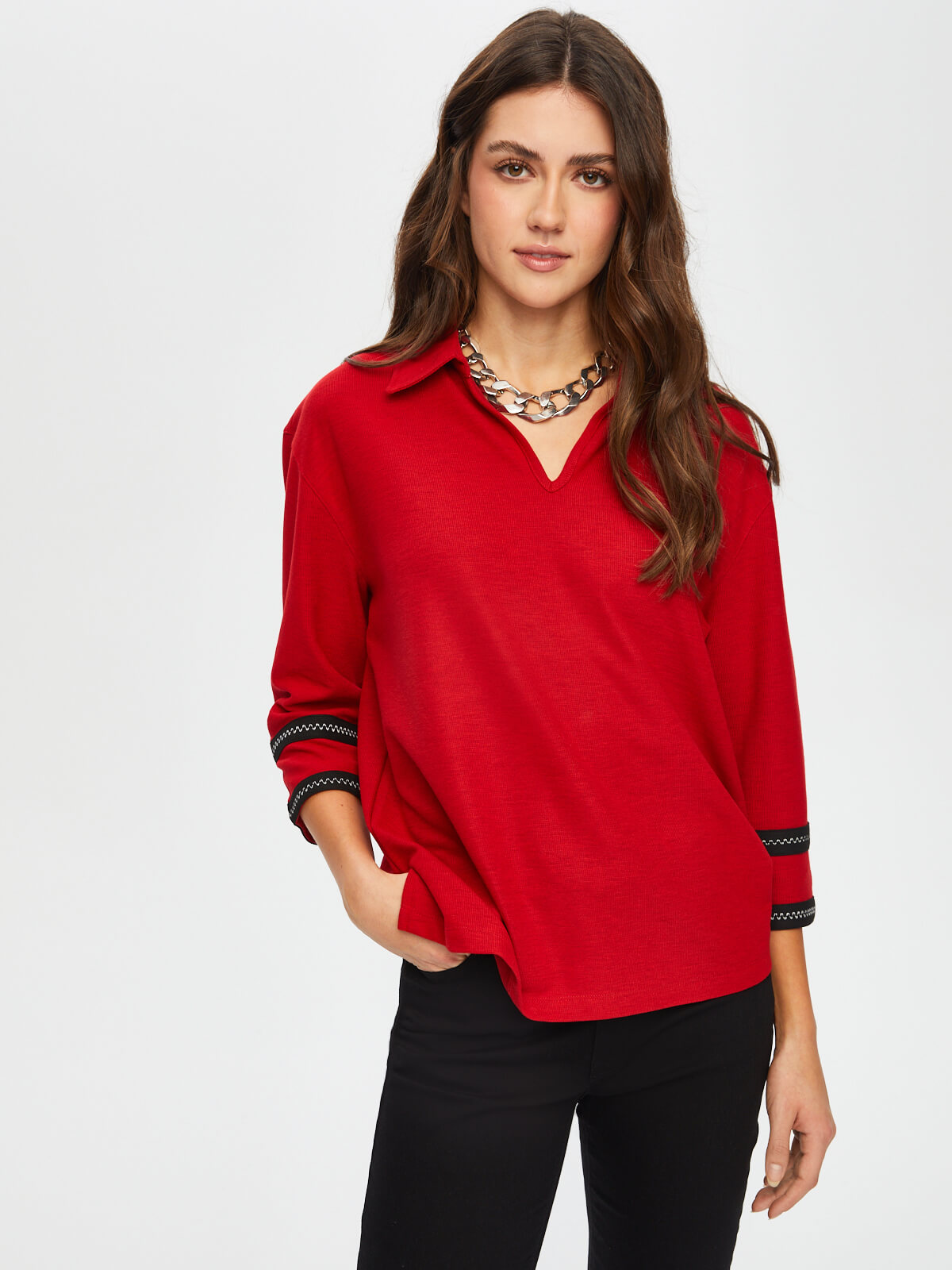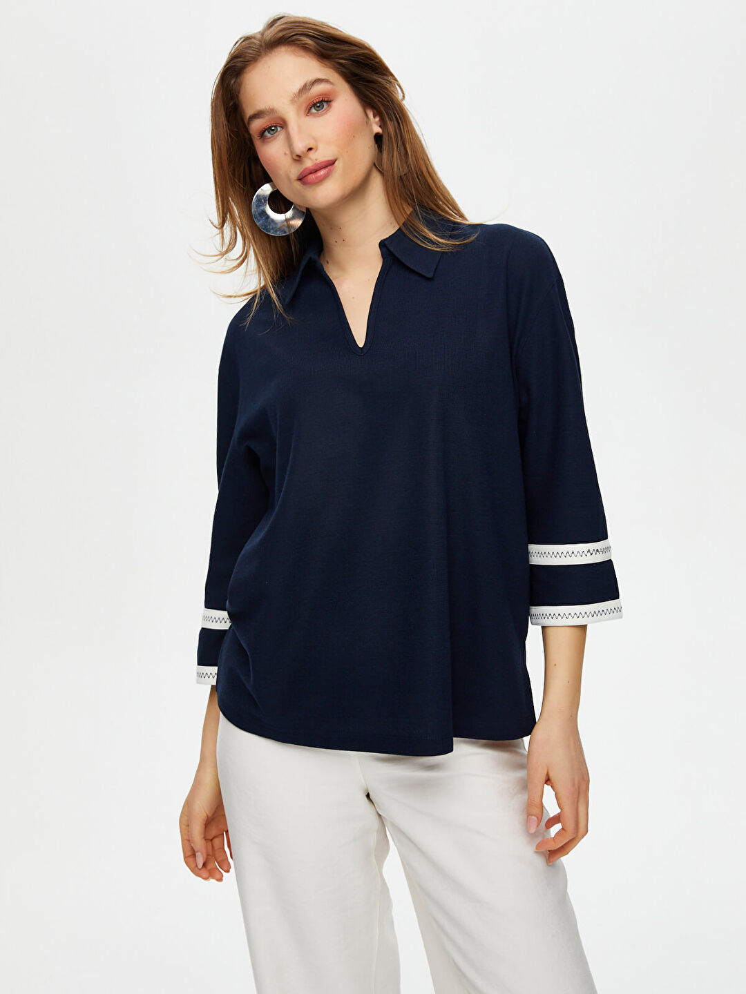 بلوزة محبوكة بياقة بولو مخططة متعرجة من Faik Sönmez