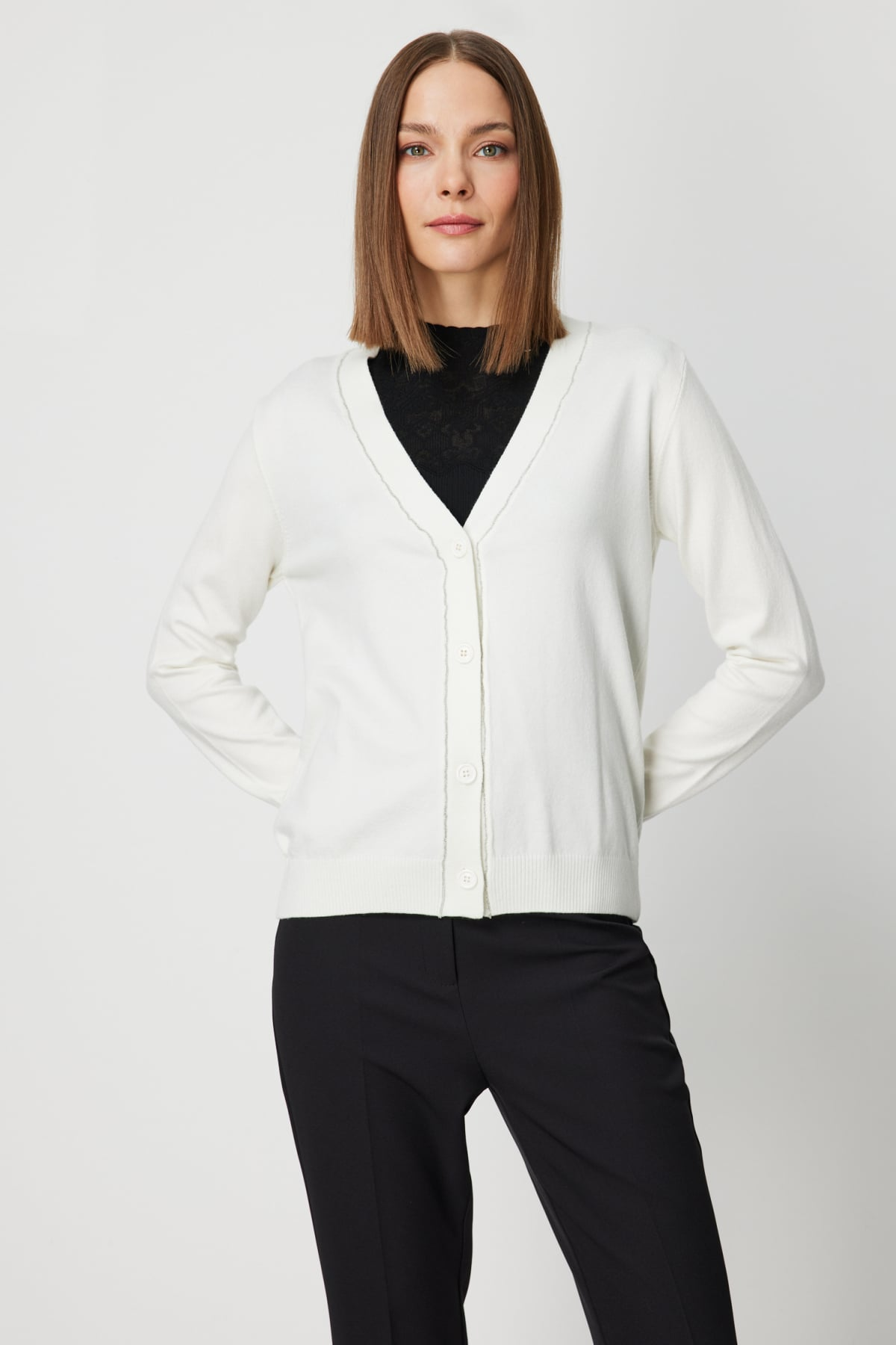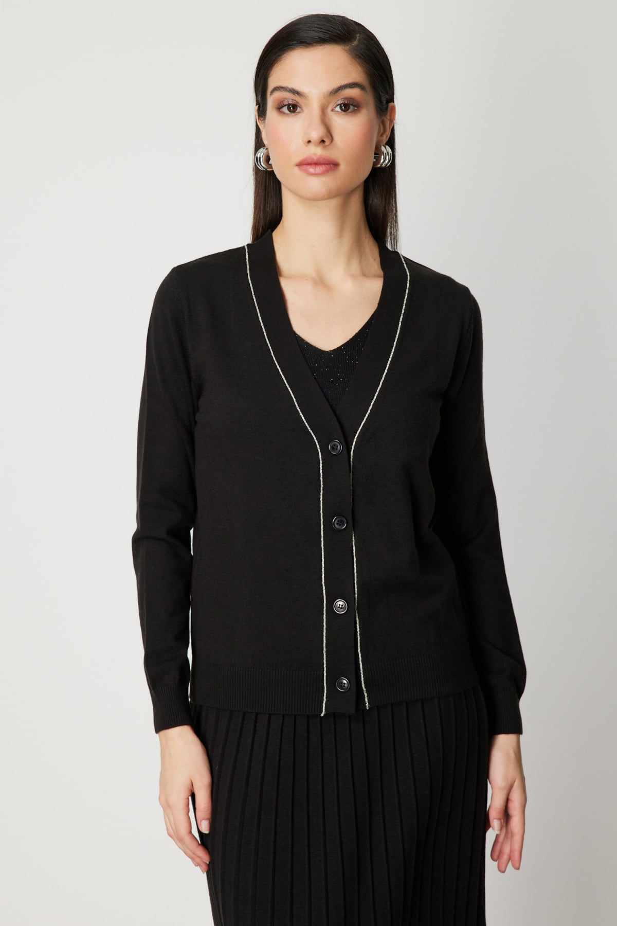 كارديجان بياقة على شكل حرف V مزين بسلسلة
