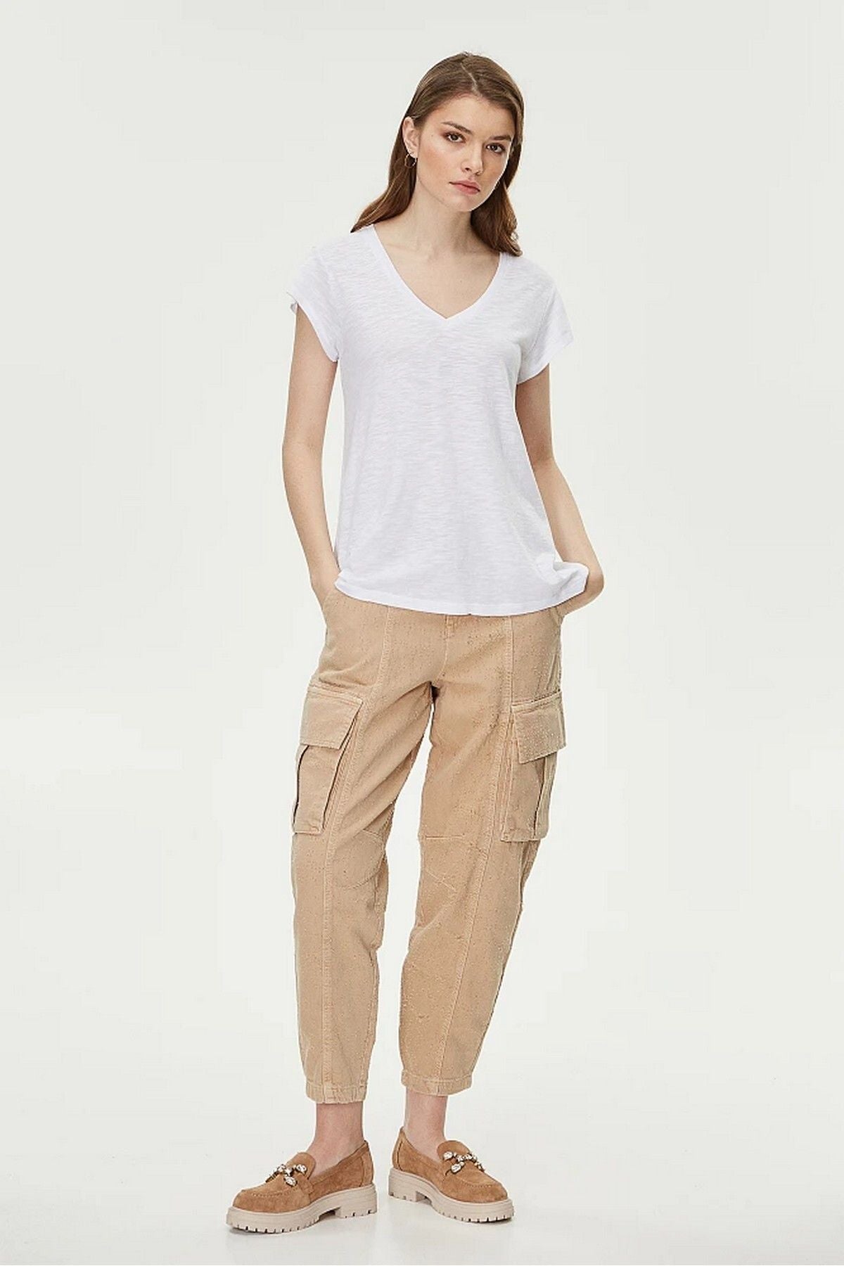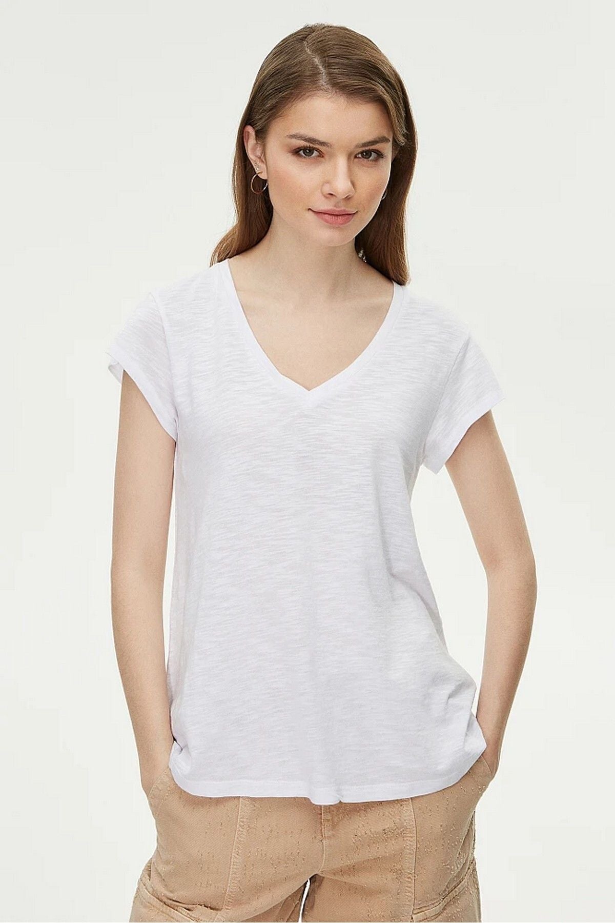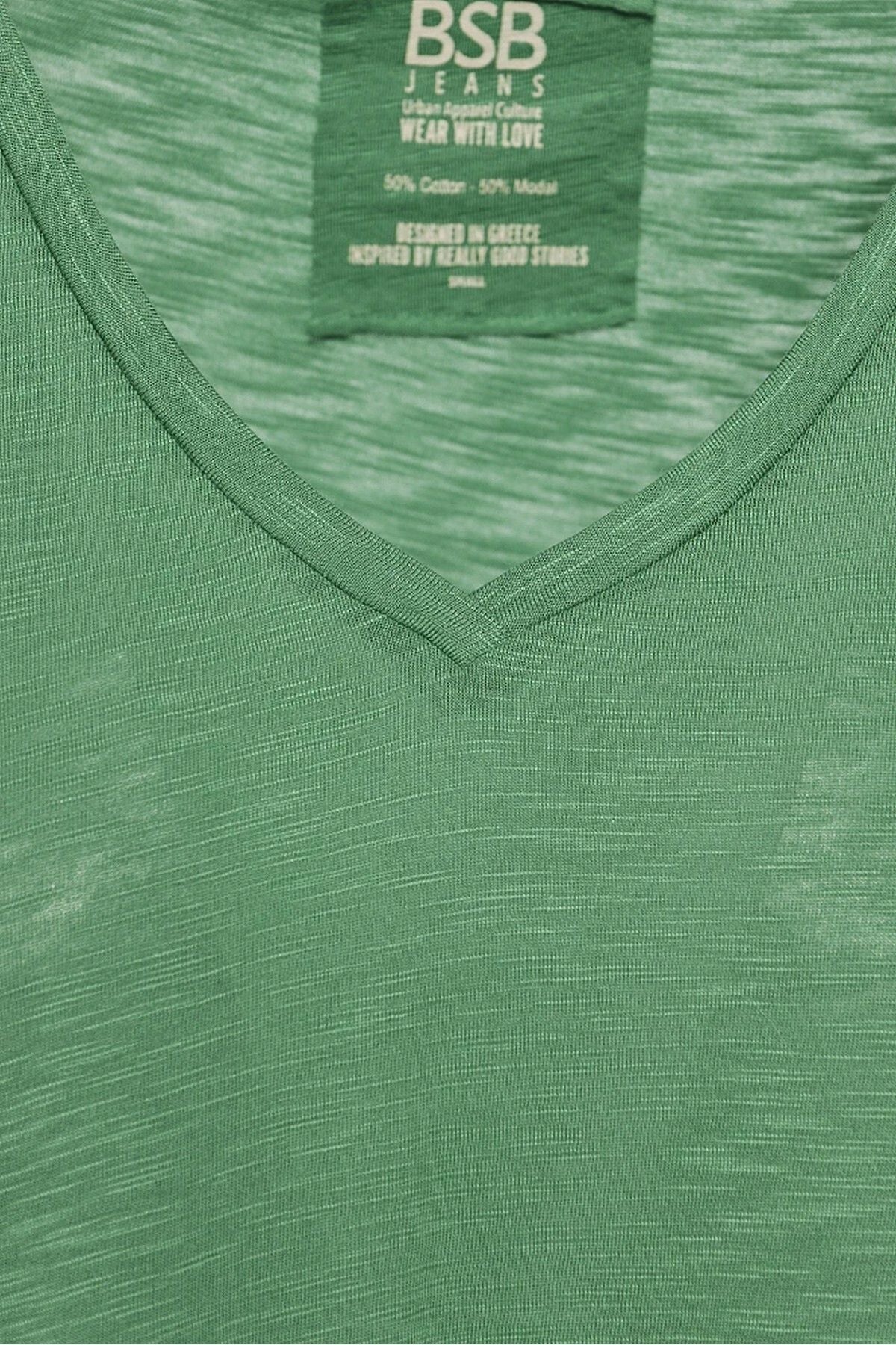 Ürün Özellikleri:; Marka : Bsb; Model : T-shirt; Sezon : İlkbahar/Yaz; Desen : Düz; Materyal : % 50 Pamuk %50 Modal; Yaka Bilgisi : V Yaka; Kol Bilgisi : Kısa Kol; Kalıp Bilgisi : Regular Fit; Manken Ölçüsü : Boy : 1.80 cm / Göğüs : 81 cm / Bel : 60 cm / Basen : 88 cm / Beden : S;
