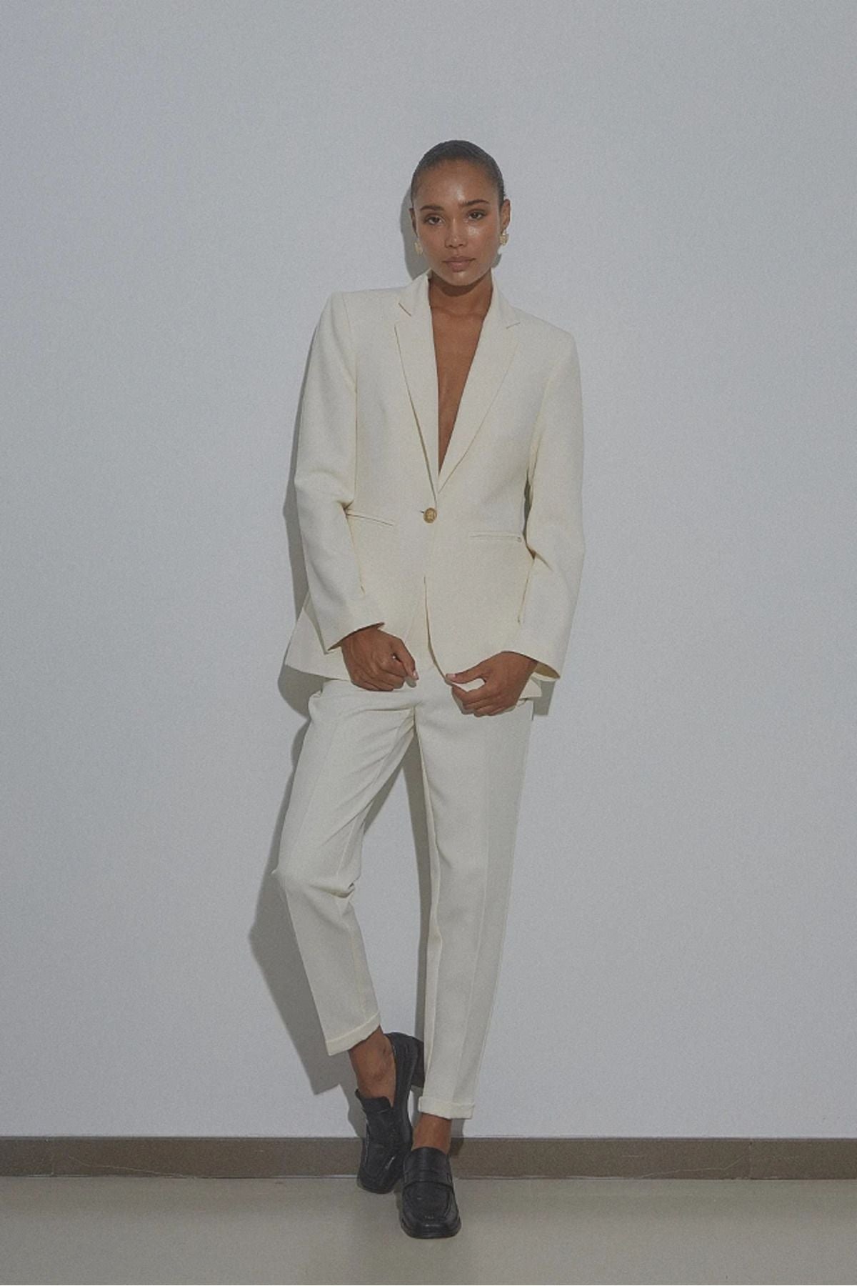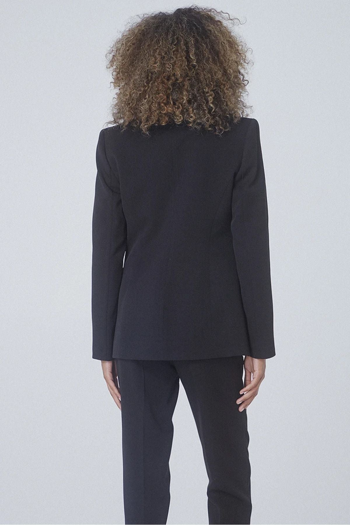 ÜRÜN DETAYLARI; Taşlı düğmeli, kontrast astarlı, yakalı, ön cepli, normal kesim, özel dikim blazer; KUMAŞ VE BAKIM...