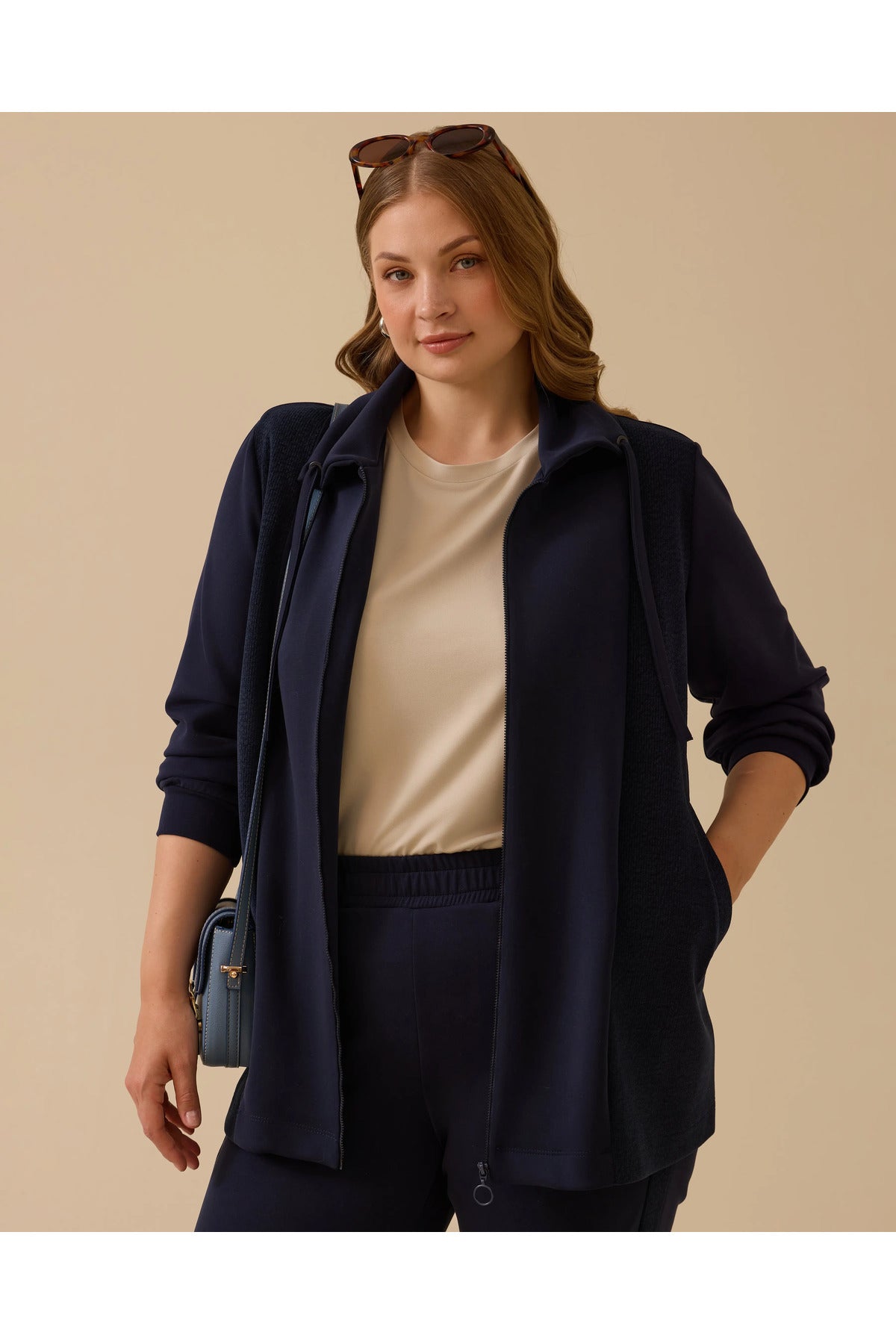 Büyük Beden Çift Kumaşlı Fermuarlı Ceket, rahat kalıbı ve modern tasarımıyla konfor sunar.