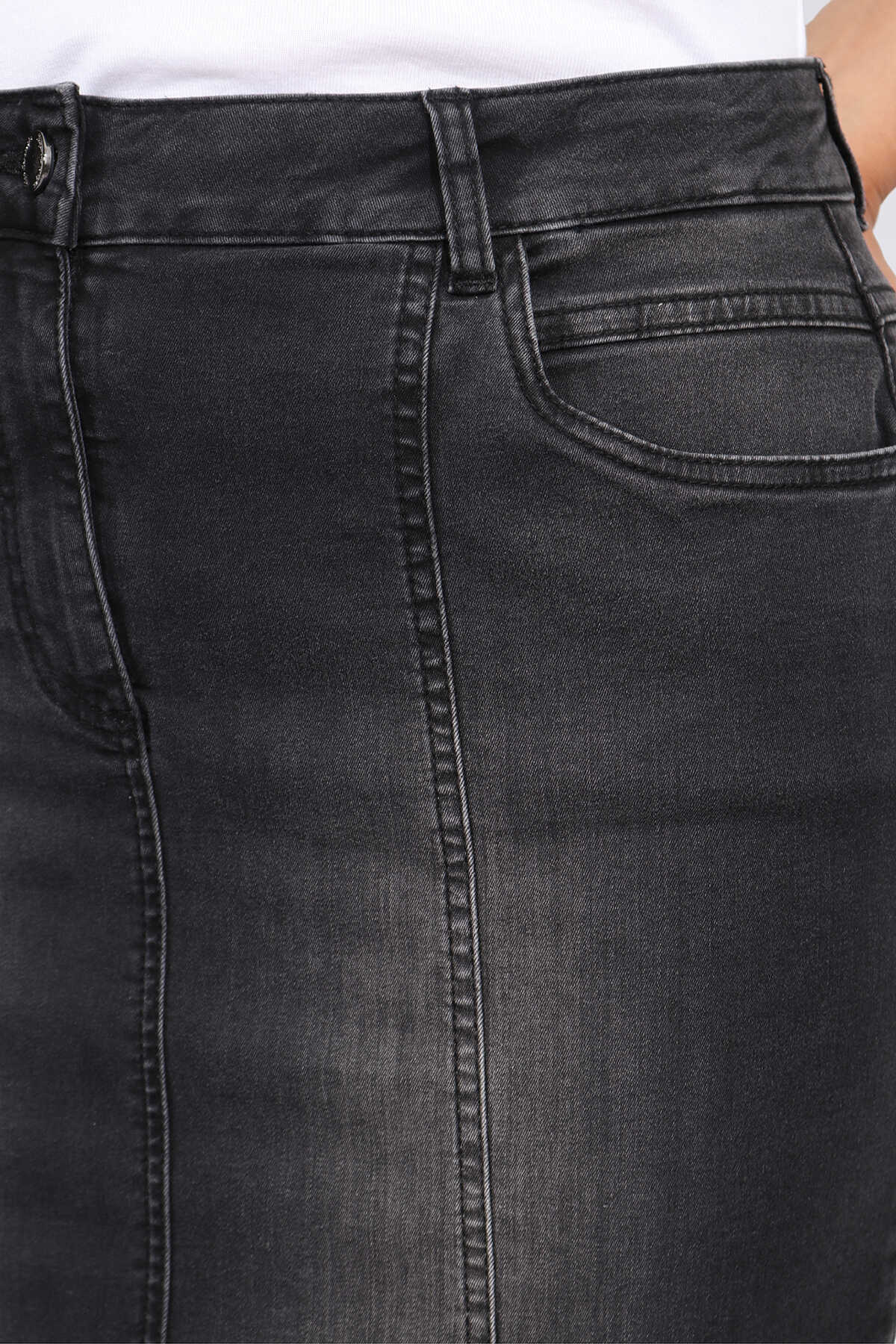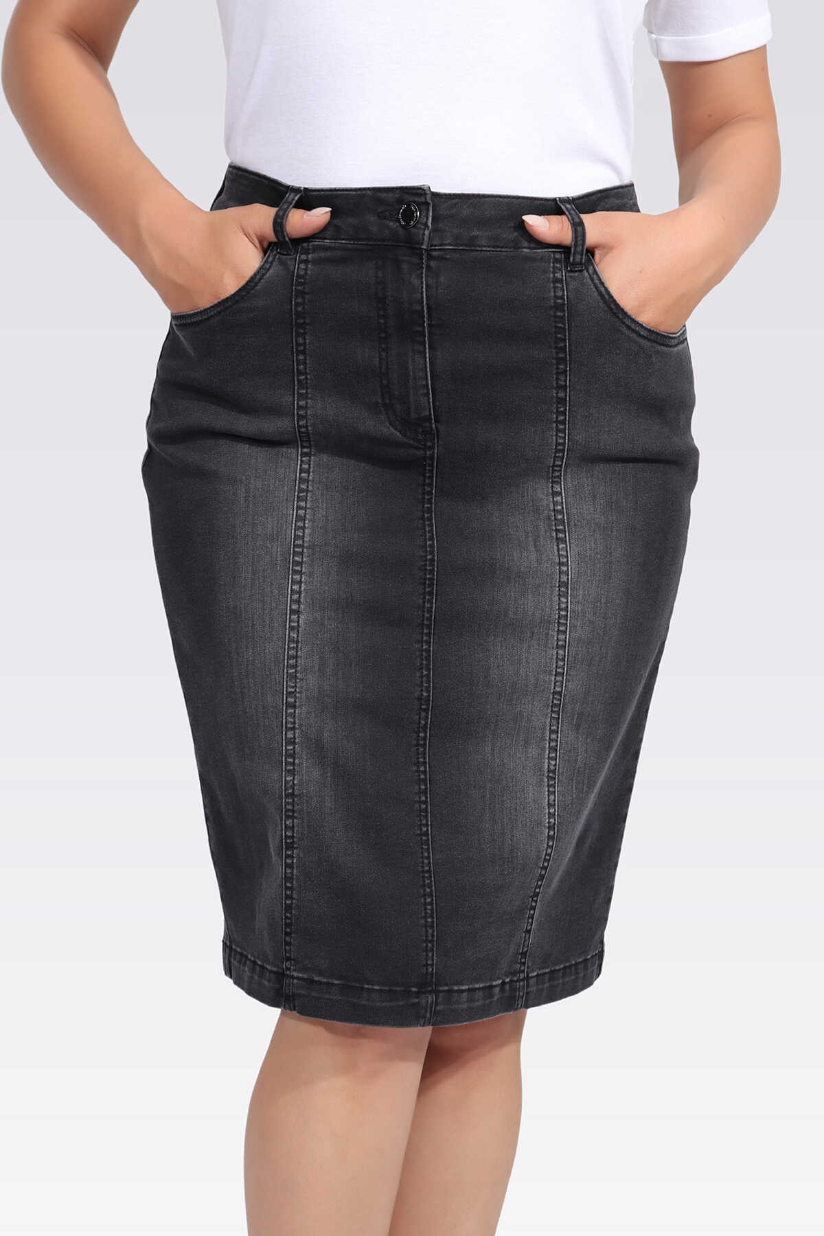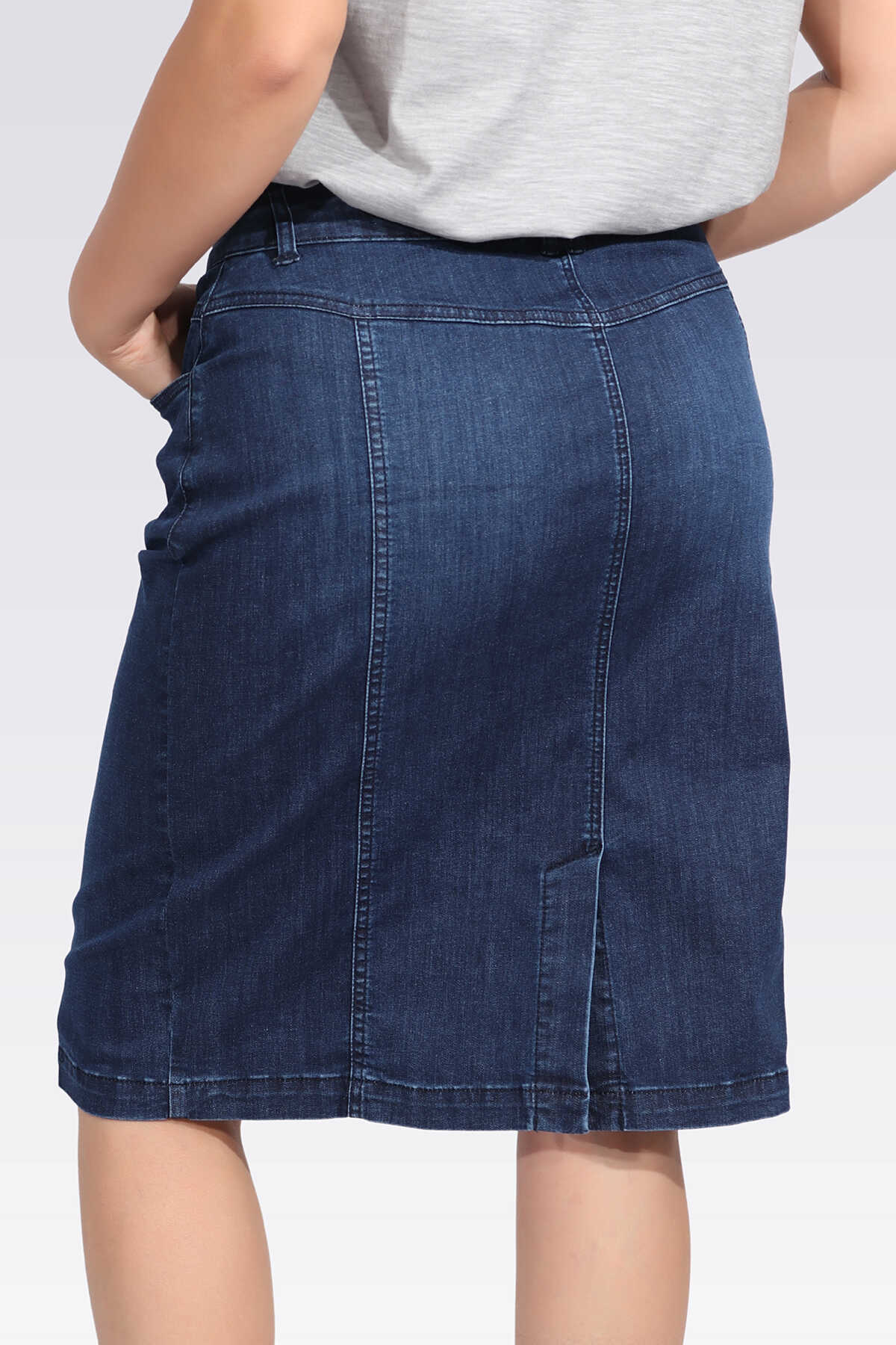 Büyük Beden Midi Boy Kot Etek Tolga Saraçoğlu