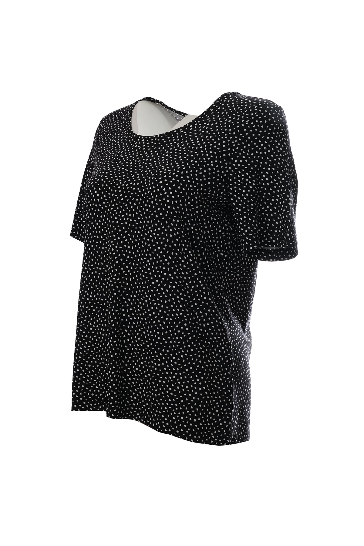 Canel'den şık ve minimalist bir tasarımla tanışın! Bu kısa kollu, yuvarlak yakalı kadın t-shirt, günlük kullanım için ideal. Siyah beyaz puantiyeli deseniyle her kıyafetinize stil katacak. Rahat regular fit kesimiyle gün boyu konfor sunar. Yüksek kaliteli malzemeyle üretilen bu t-shirt, uzun ömürlü kullanım sağlar. İster jean pantolon, ister etek veya şort ile kombinleyin; her durumda şık ve modern görünün. 2025 sonbahar/kış sezonunun trendlerine uygun tasarımıyla gardırobunuzun vazgeçilmez parçalarından biri olacak. Canel kalitesiyle kendinizi özel hissedin!