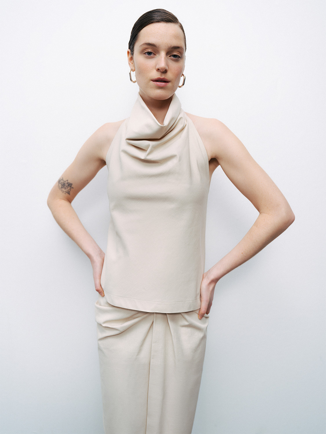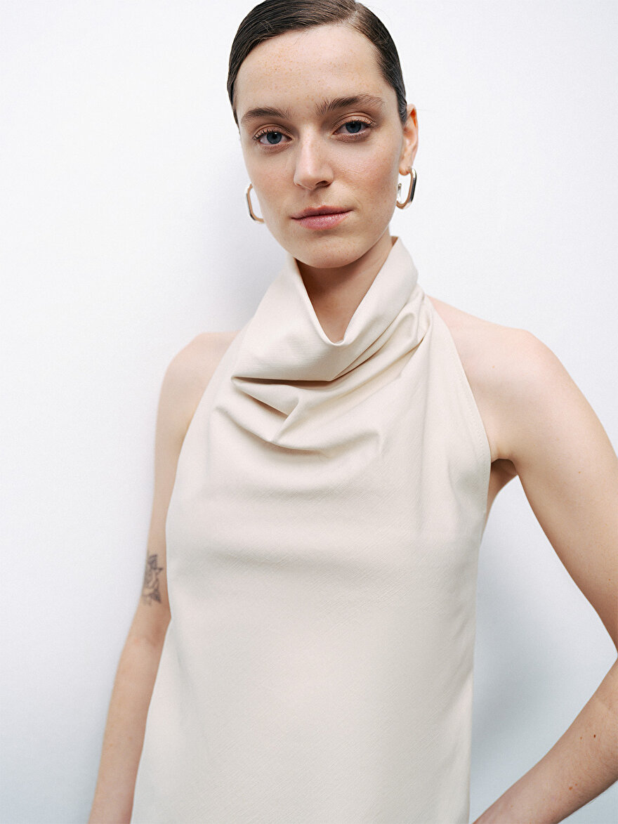 Ürün Açıklaması: Regular fit, tam kalıp, astarsız, dokuma, kolsuz, boyundan çıtçıt kapamalı, sırtta apara detaylı ve dekolteli, degaje yaka bluz