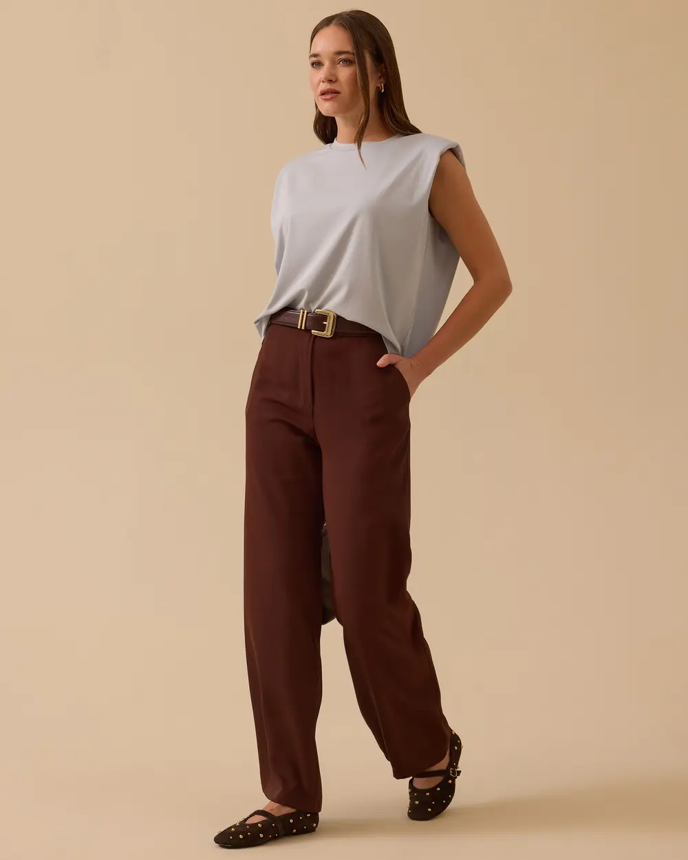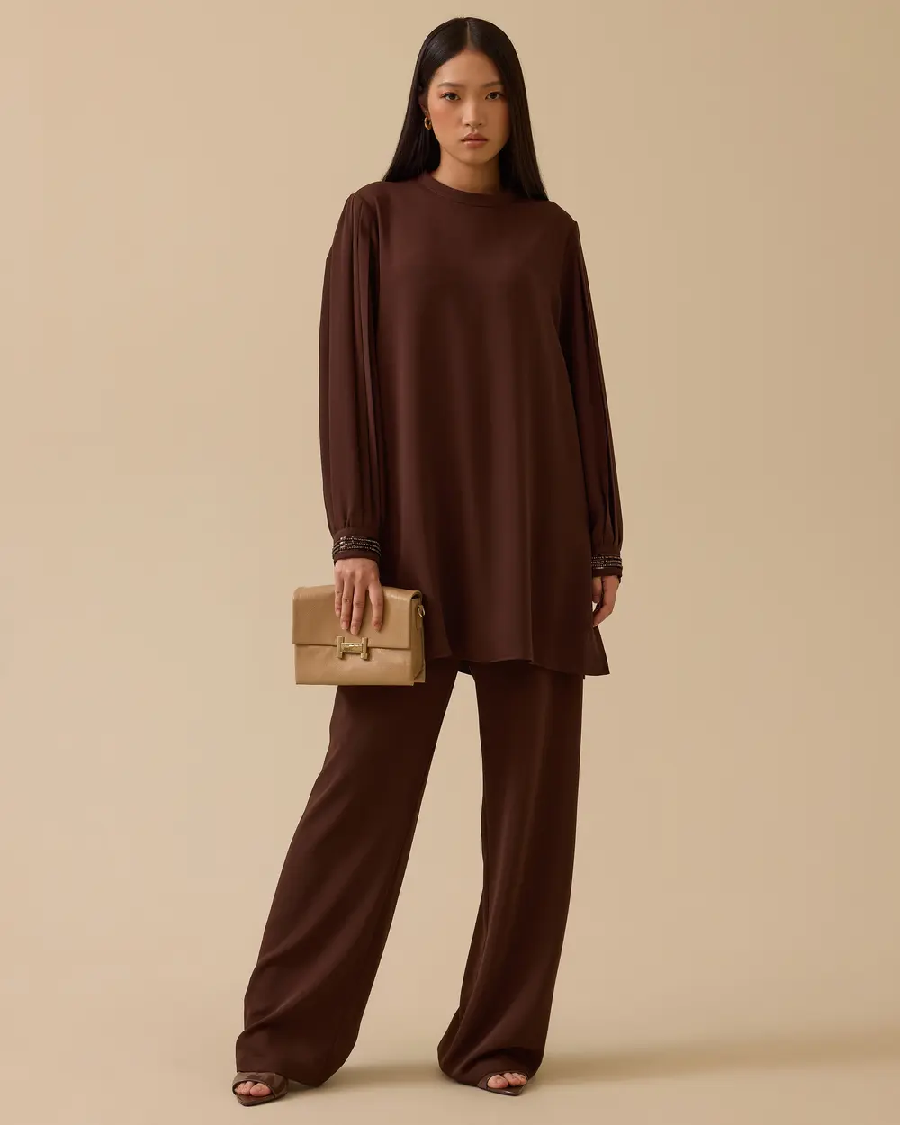 Düz Kesim Tam Boy Pantolon, akıcı dokusu ve rahat kalıbıyla net bir siluet sunar, günlük ve ofis kombinlerine uyum sağlar.