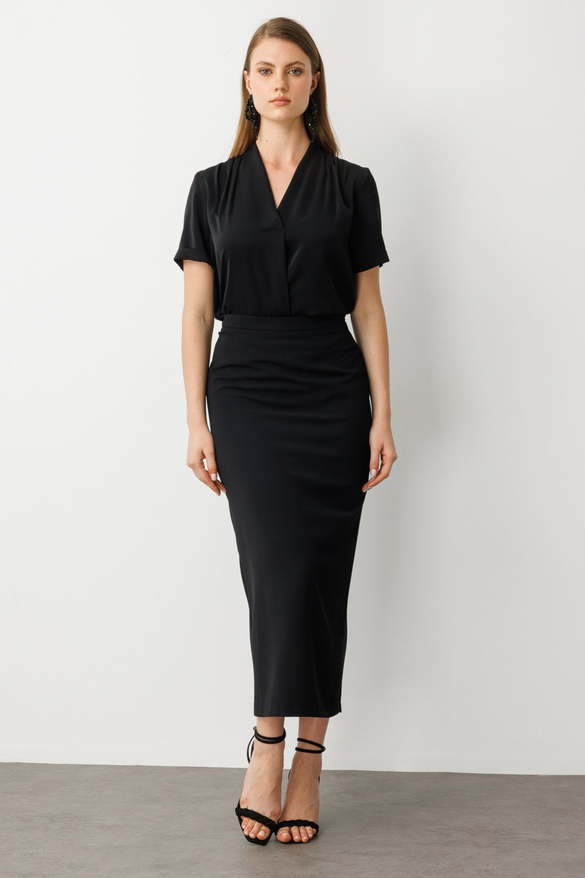 Ekol Büyük Beden Yırtmaç Görünümlü Uzun Etek