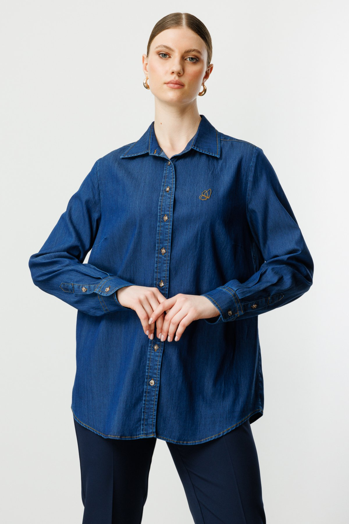 Ekol Kelebek İşlemeli Büyük Beden Gömlek