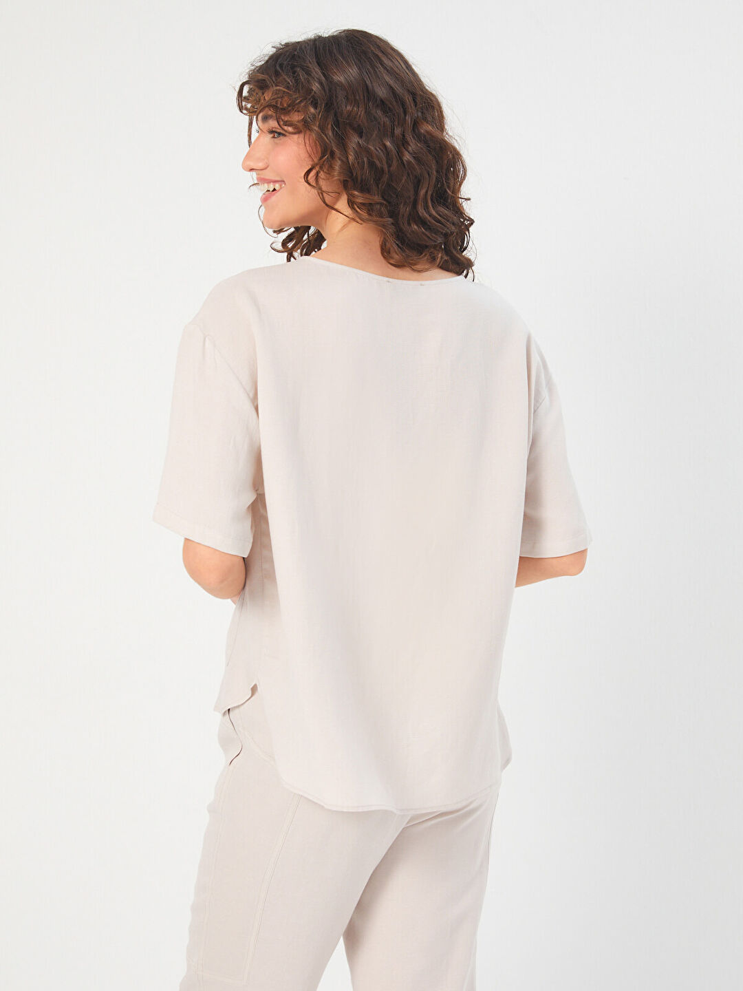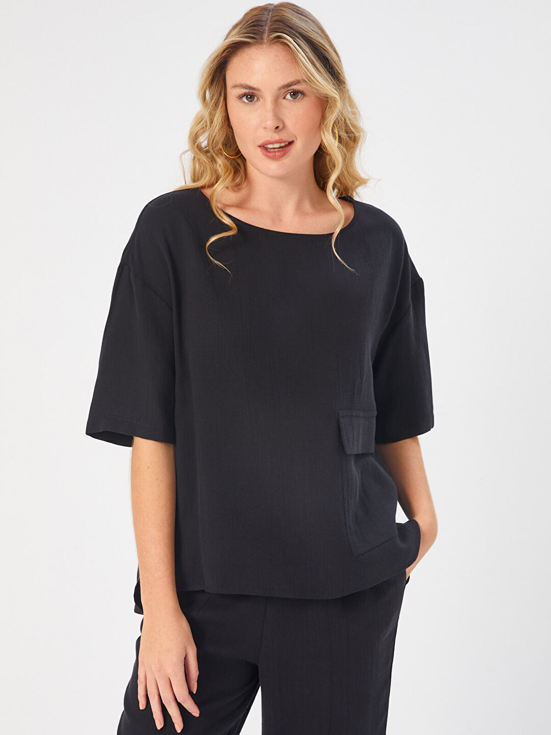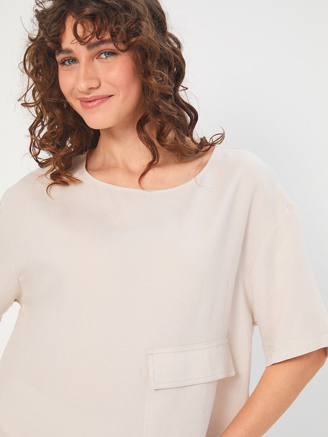 Faik Sönmez Kadın Önü Cep Detaylı Dokuma Bluz U68182%77 Tensel %23 Keten