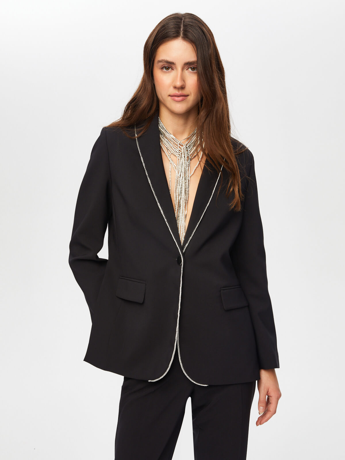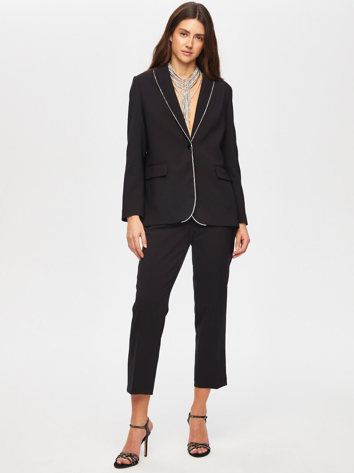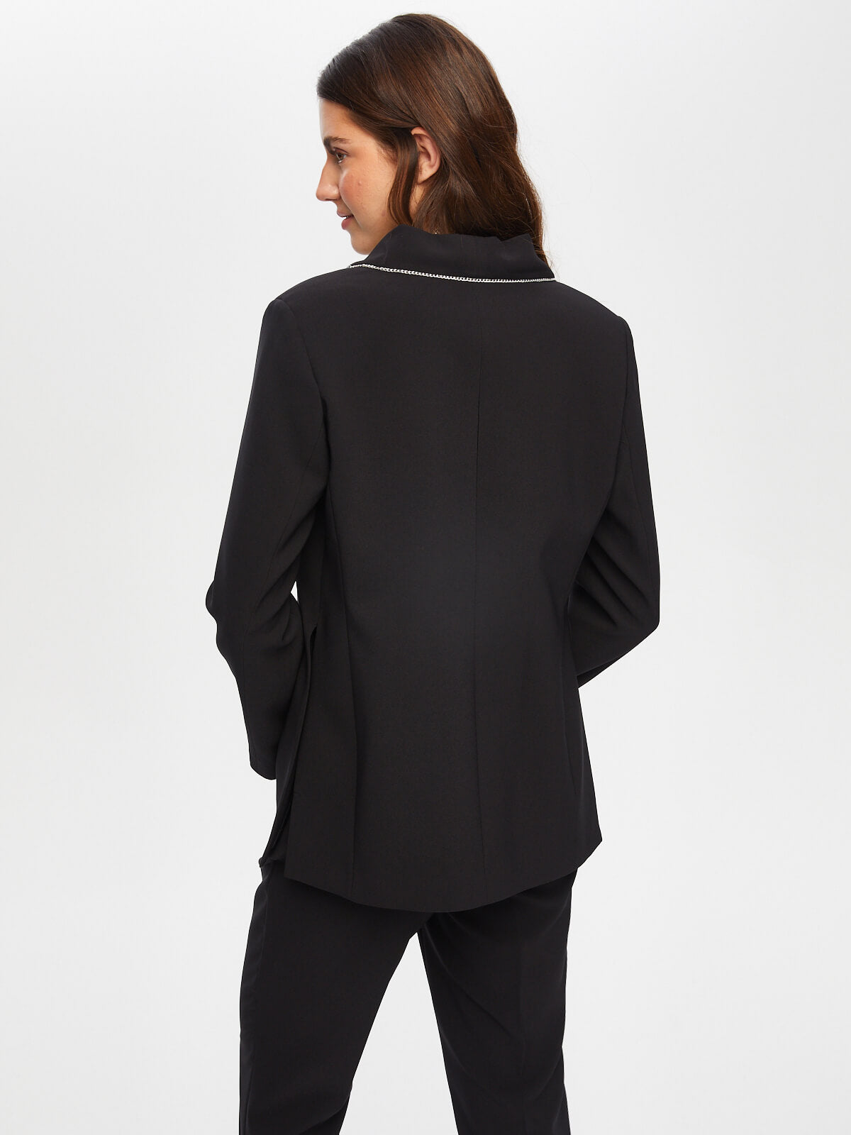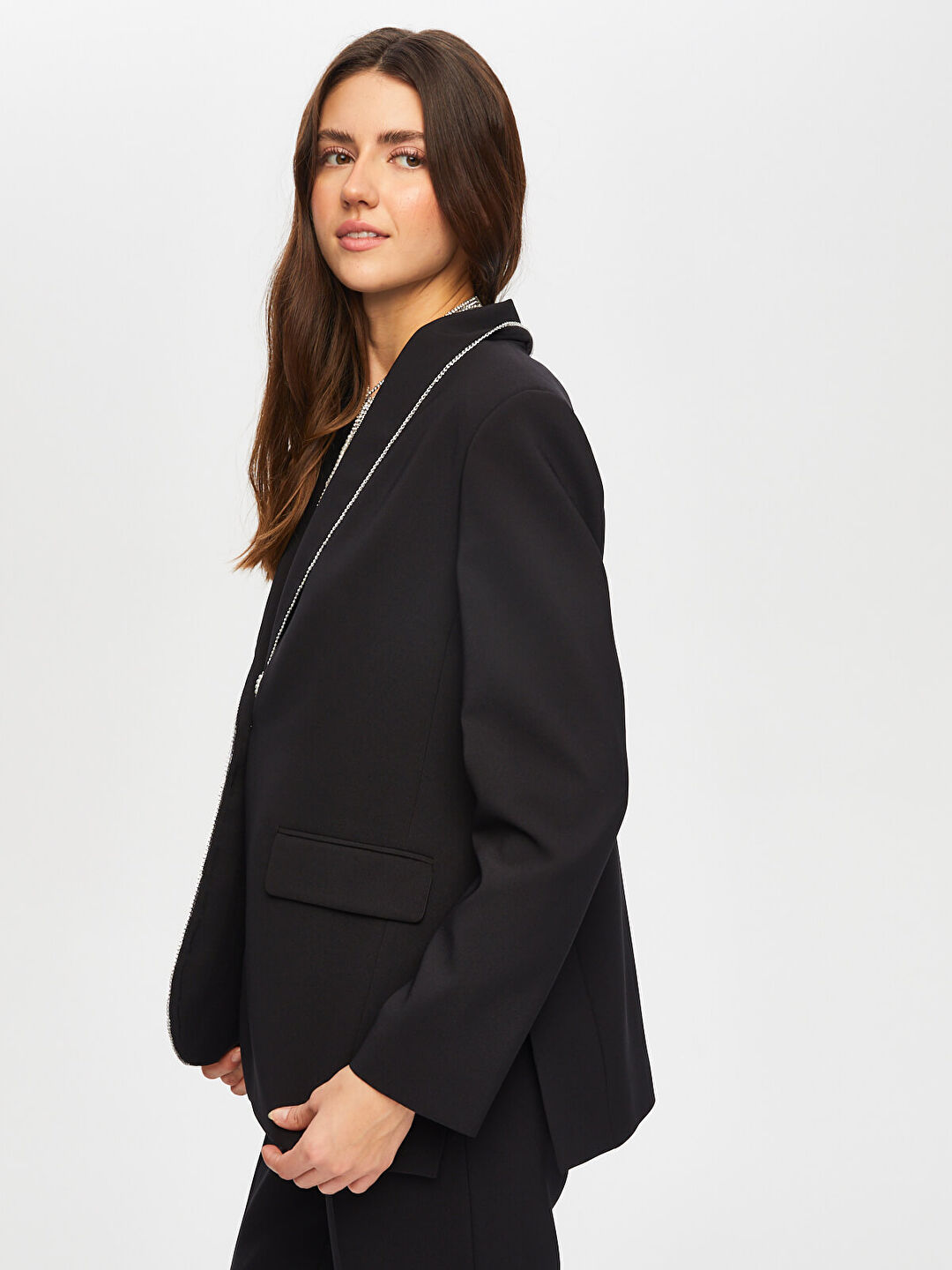 Faik Sönmez Kadın Zincir Şerit Detaylı Şal Yaka Ceket 25YUS25CKT017%92 Polyester %8 Elastan