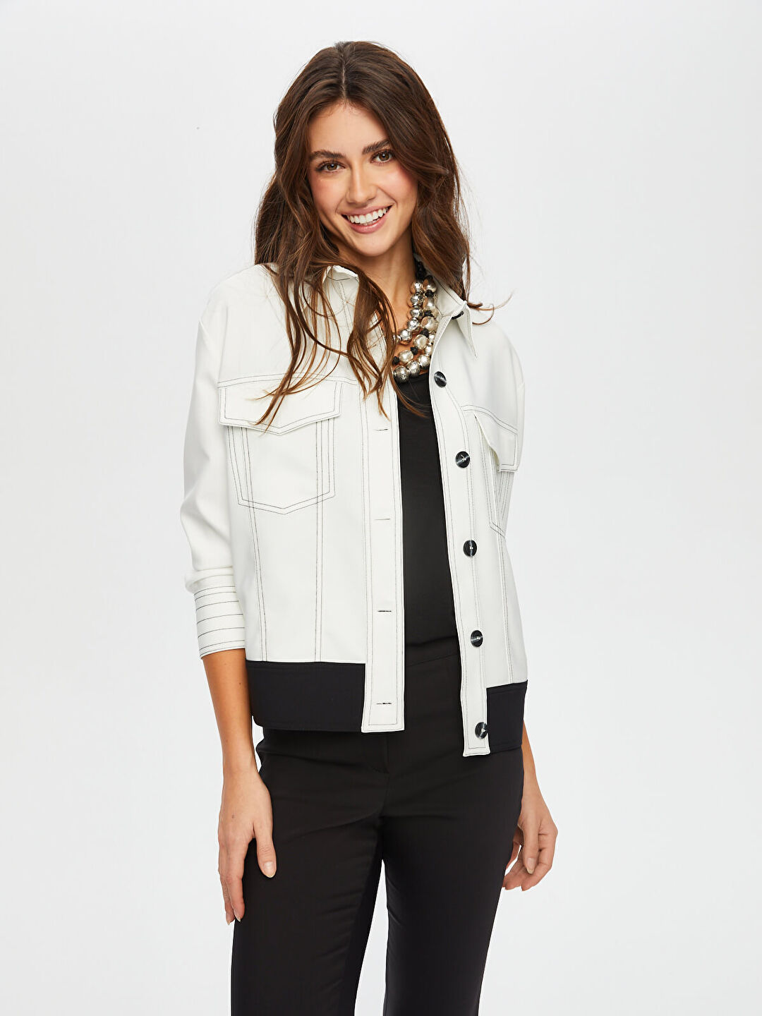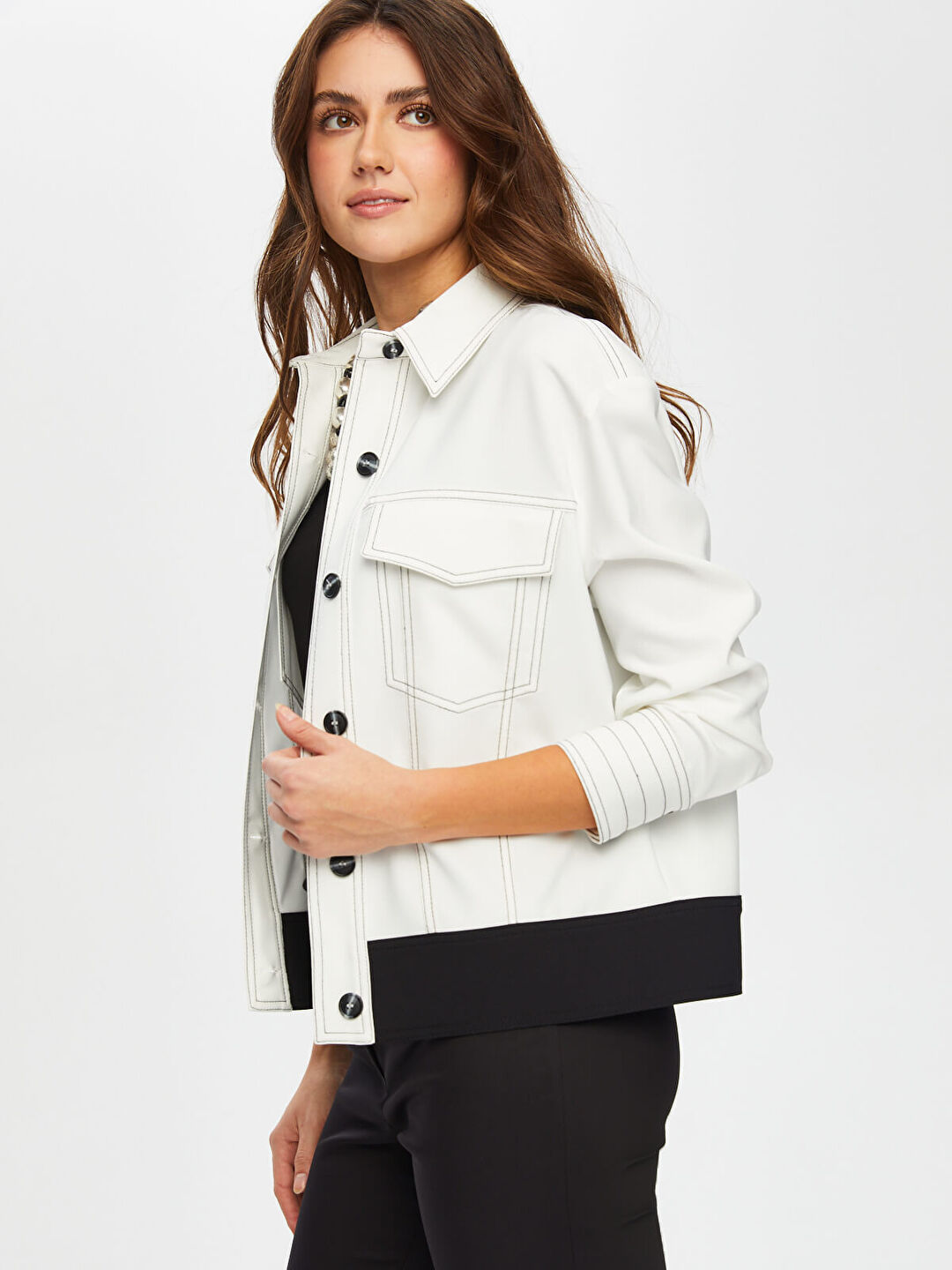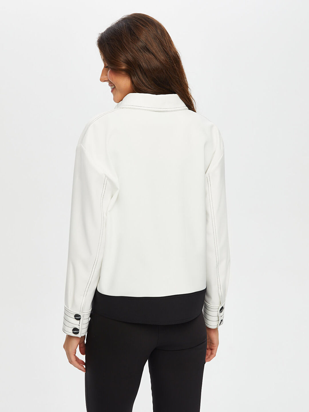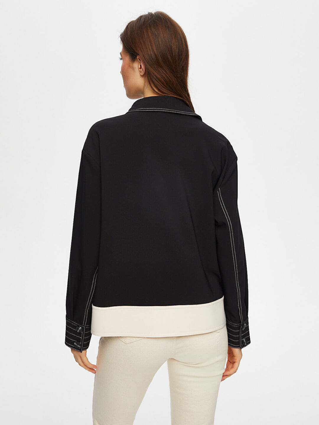 Faik Sönmez Kadın Kontrast Dikiş Detaylı Astarsız Track Ceket