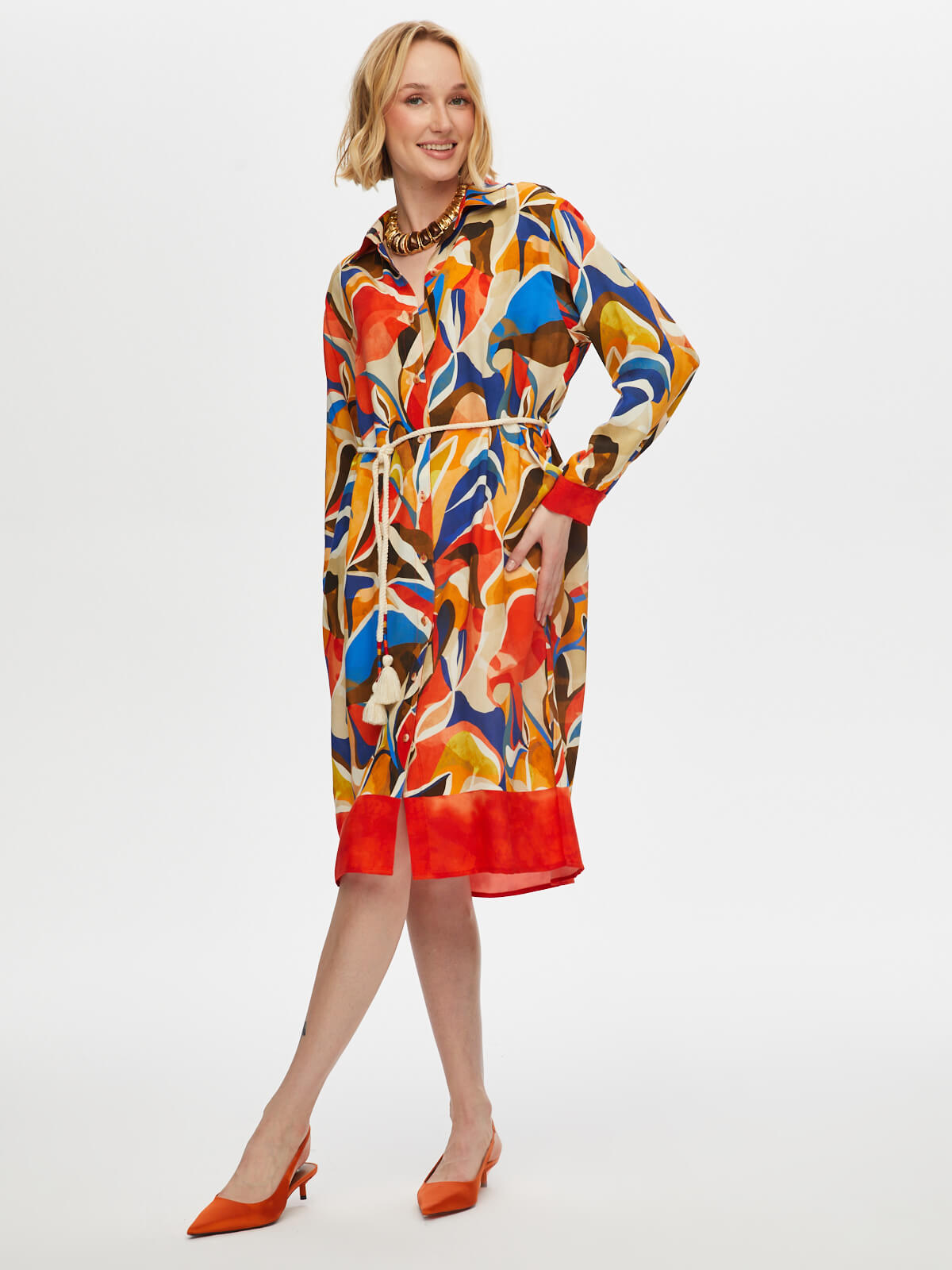Ürün Adı : Eteği Sulu Kemer Detaylı Viskon Gömlek Elbise S25ELB031