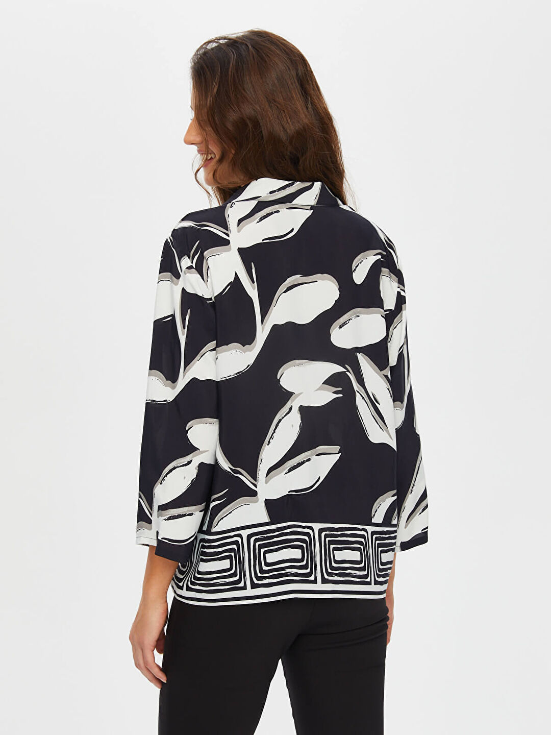 Faik Sönmez Kadın Eteği Sulu Monochrome Yaprak Desen Gömlek
