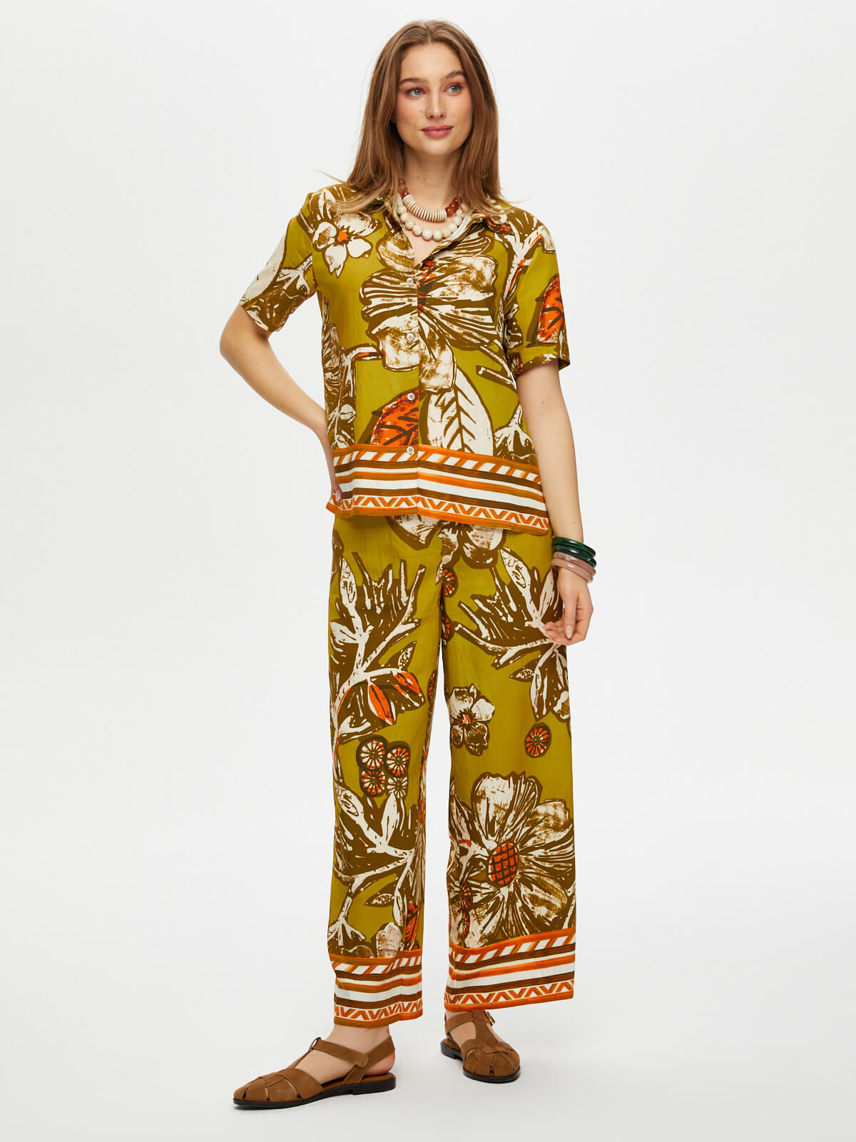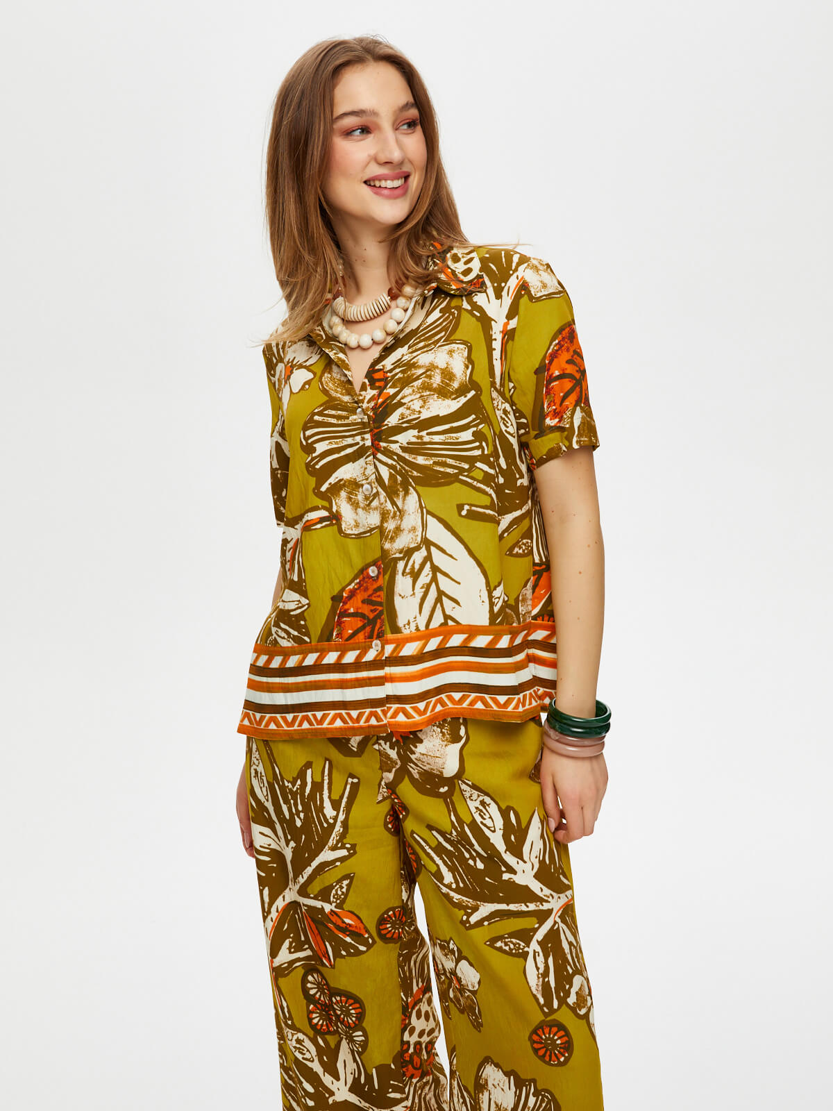 Faik Sönmez Kadın Eteği Sulu Çiçek Desen Kısa Kol Viskon Gömlek%82 Viskon %18 Polyamid