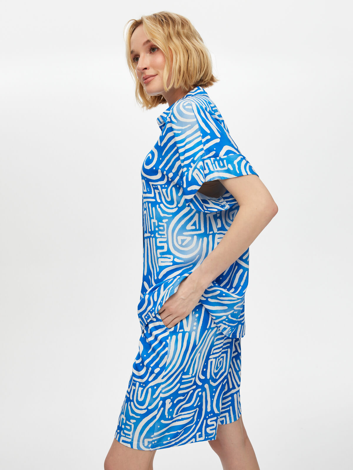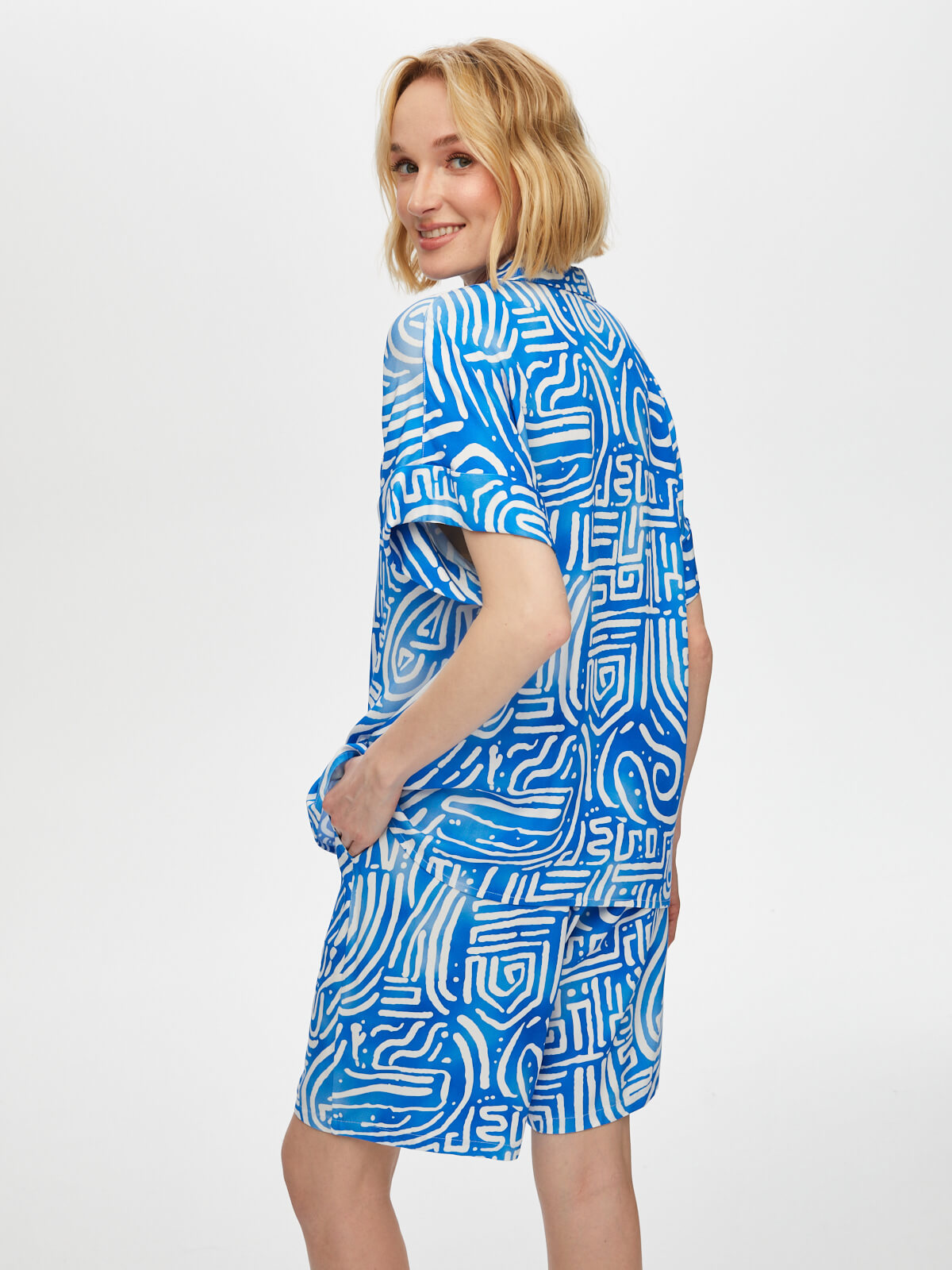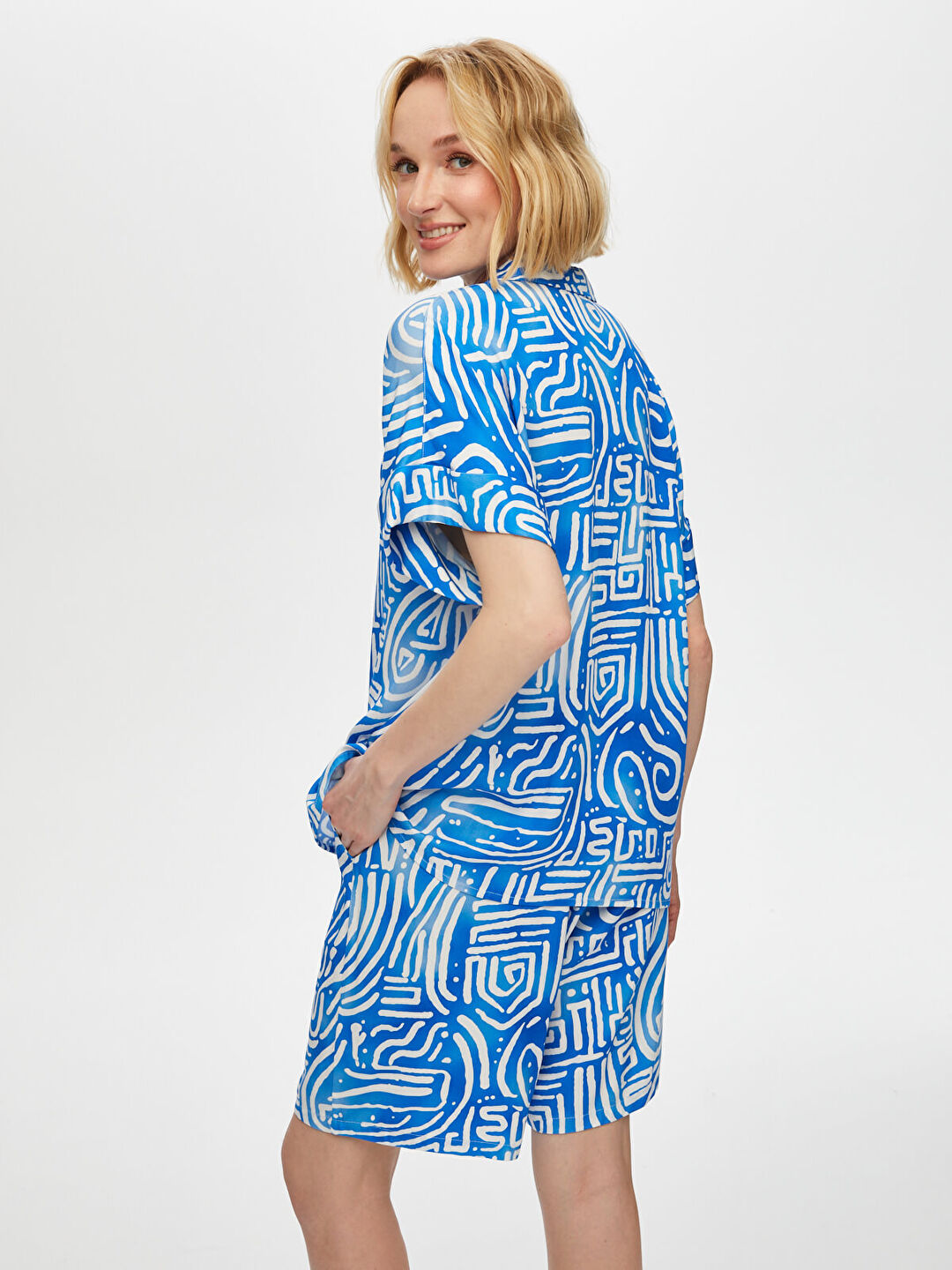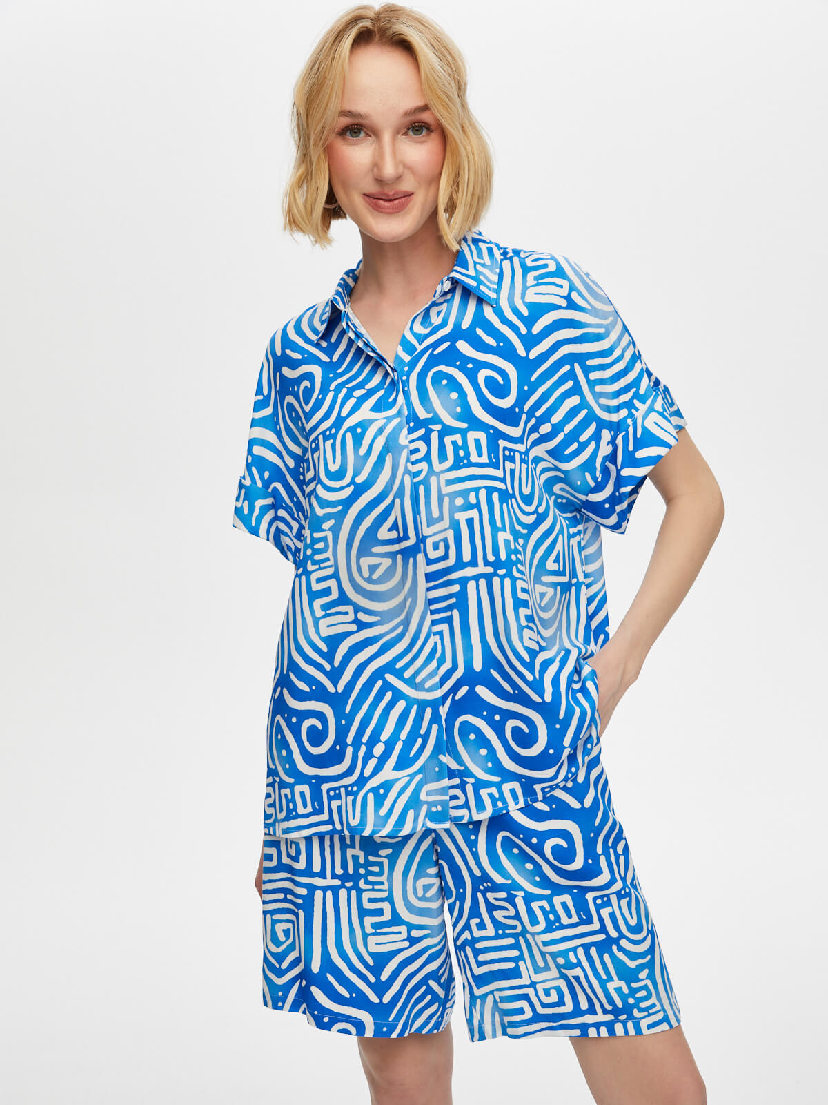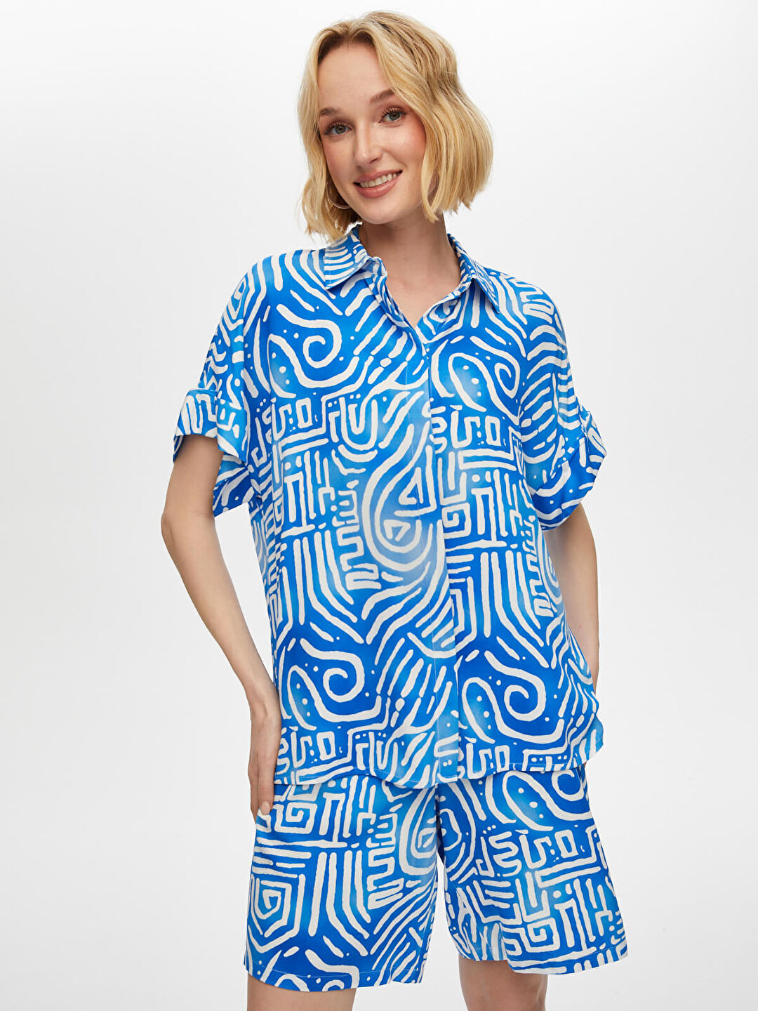 Ürün Adı : Soyut Desen Kısa Kol Viskon Gömlek