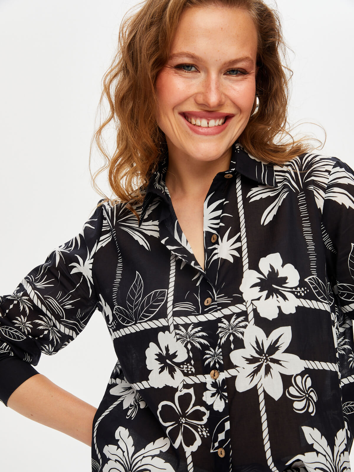 Ürün Adı : Monochrome Çiçek Desen Pamuk Vual Gömlek S25GML054