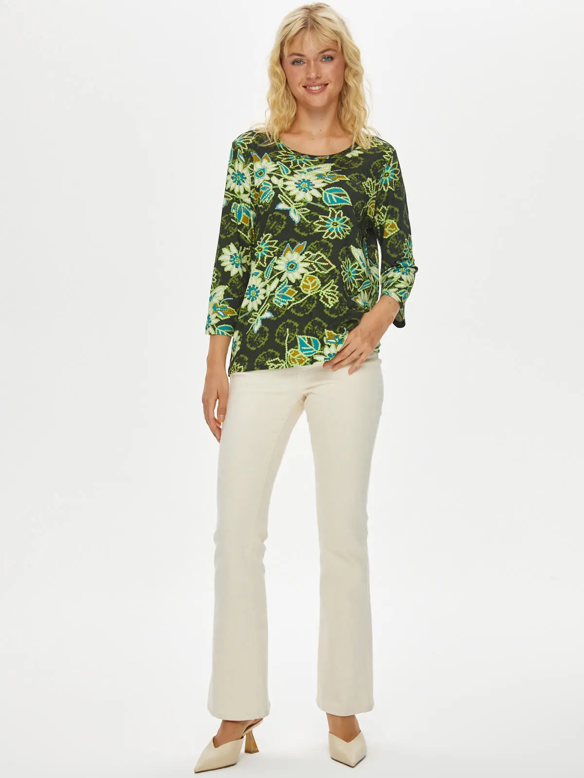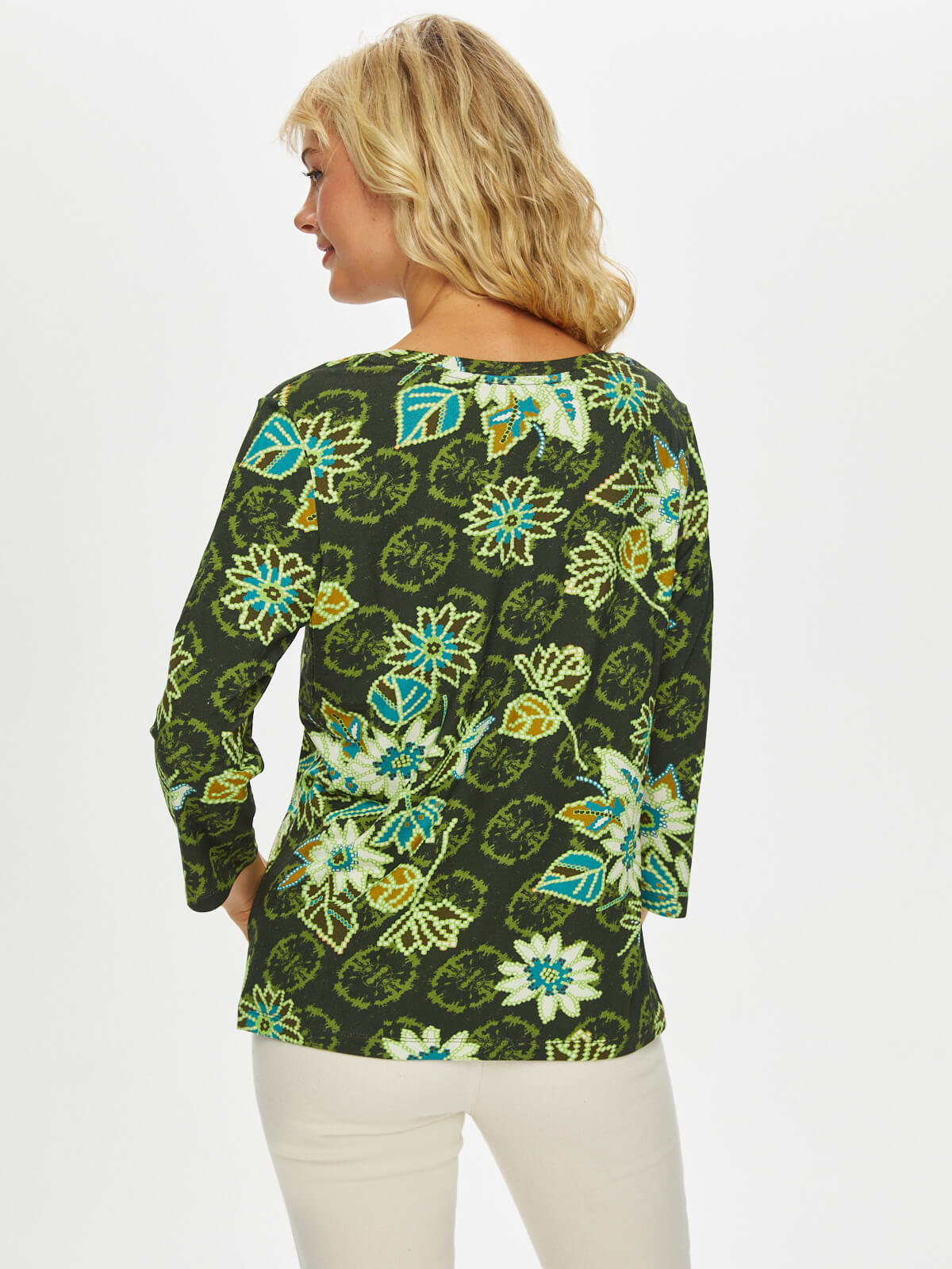 Ürün Adı : Çiçek Desen V Yaka 3/4 Kol T-Shirt 69591