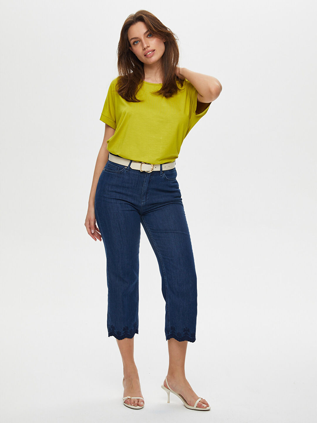 Faik Sönmez Nakış Detaylı Midi Boy Kot Şort - Günlük Kombinler İçin