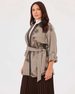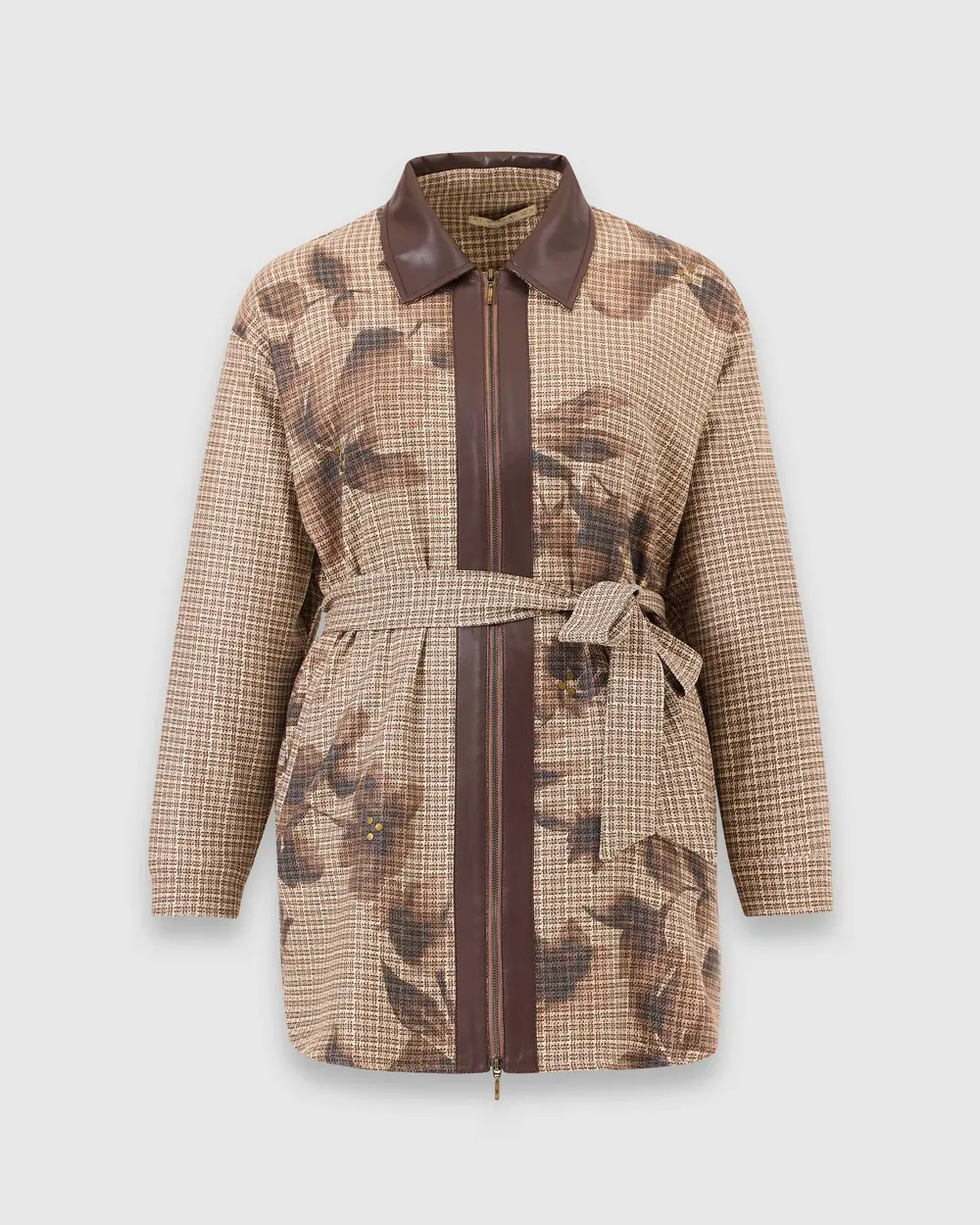 Büyük Beden Çiçek Desenli Kuşaklı Ceket, çiçek desenleri ve kuşak detayıyla feminen bir görünüm sunar; her kombine zarif bir dokunuş katar.