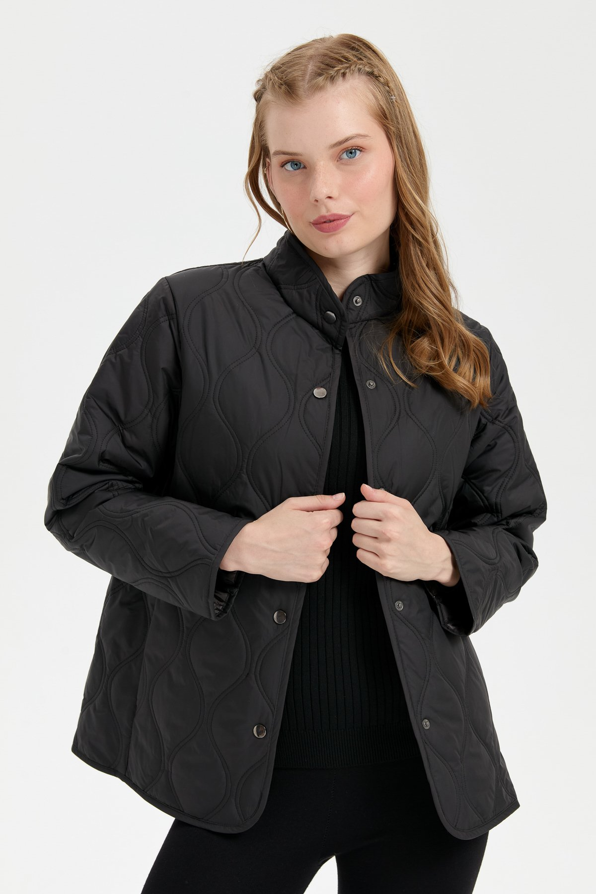 Kadın Önü Çıtçıtlı Soğan Desenli Kısa Kapitone Ceket Desen