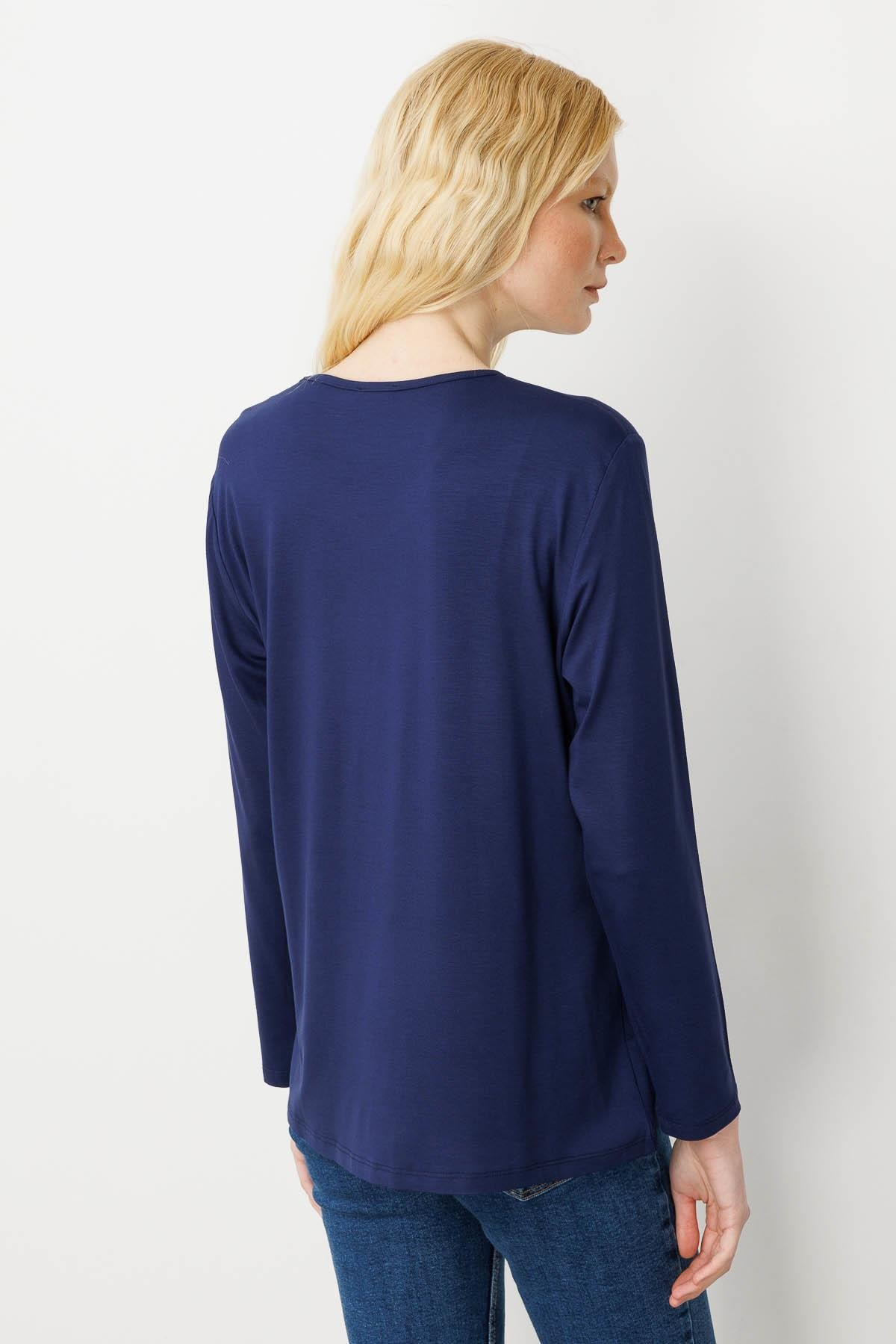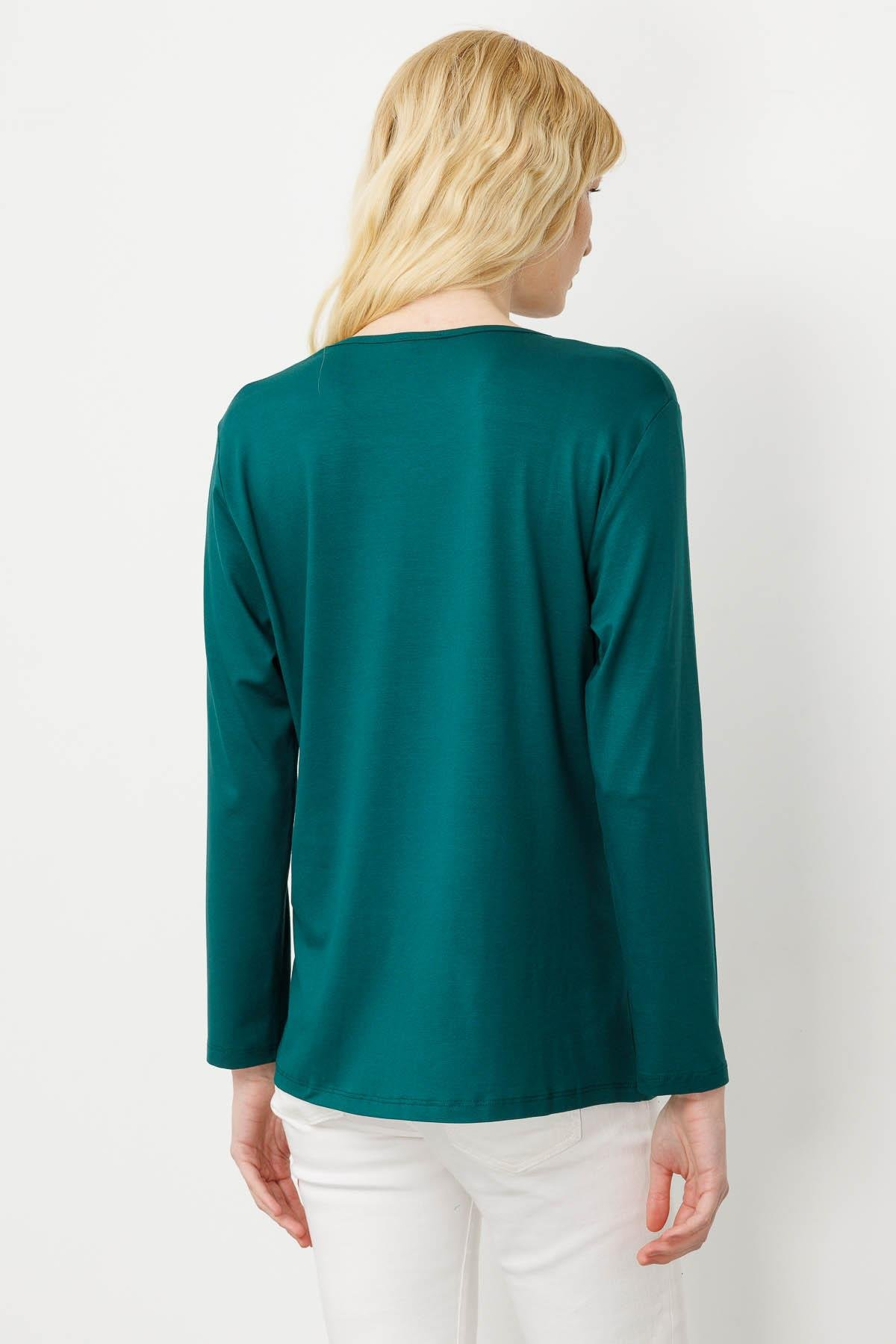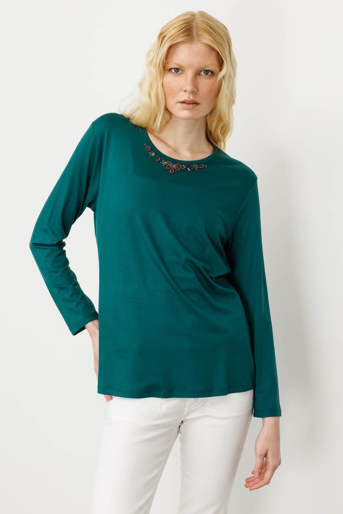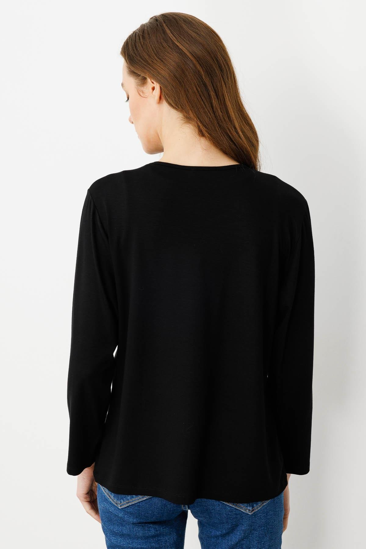 Kadın Sıfır Yaka Boncuk İşlemeli Penye Bluz SiyahDesen